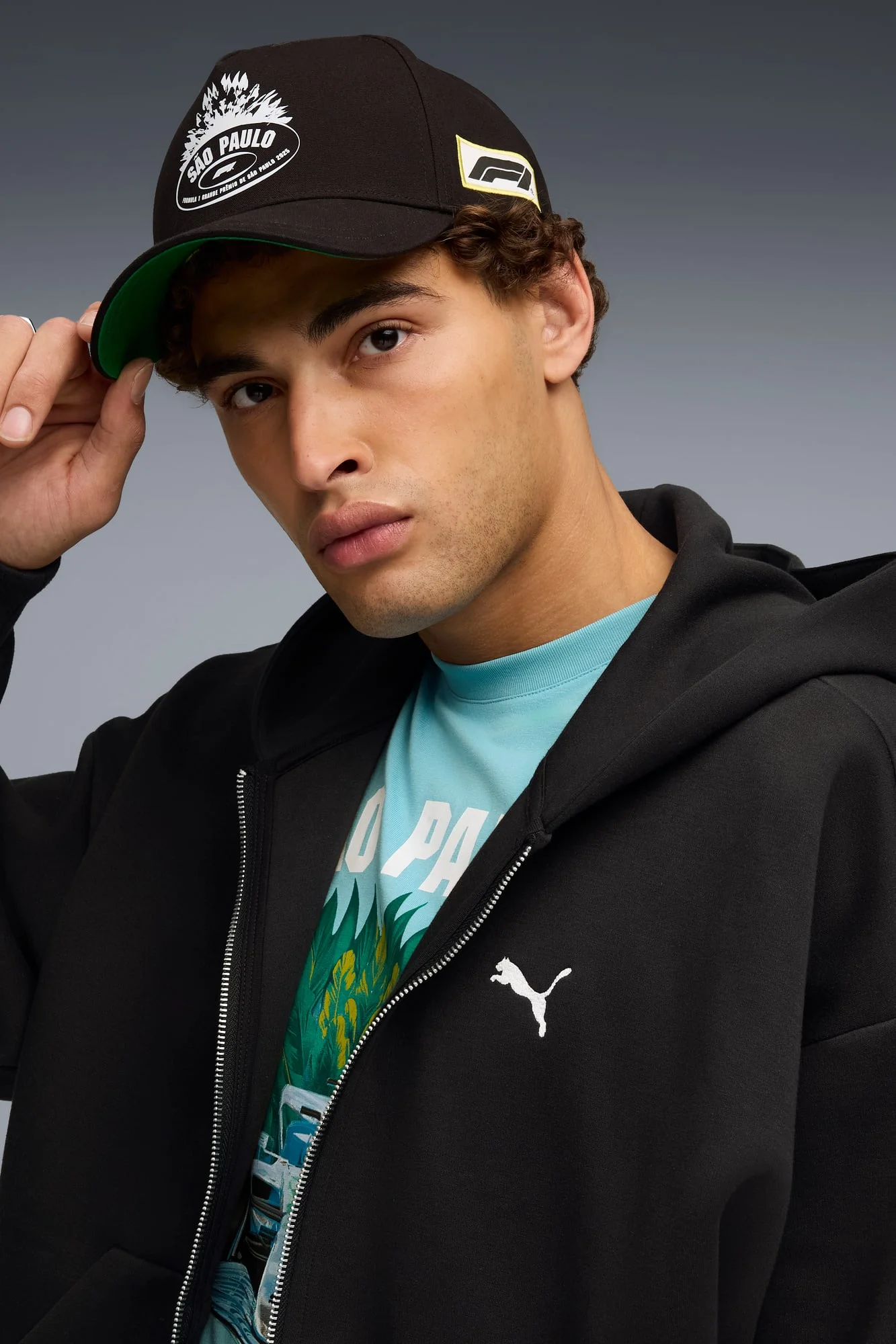 PRODUCT STORY Complete your race-day outfit with a structured cap that showcases your passion for motorsports. Featuring a pre-curved visor, bold Sao Paulo graphics, and embroidered PUMA branding, it's designed for fans who never miss the excitement. Perfect for cheering at the track or everyday adventures. Classic PUMA energy with Formula 1 spirit. DETAILS - Style: 026675_02 - Color: PUMA Black - Snapback double row with border - Pre-curved brim - HD printed F1® Grande Premio de Sao Paulo 2025 logo on front panel - Formula 1® Woven label on left panel - 5 panels, with pinch, embroidered eyelets MATERIAL INFORMATION - Shell: 100% cotton - Front Lining: 100% polyester - Under Visor: 100% cotton