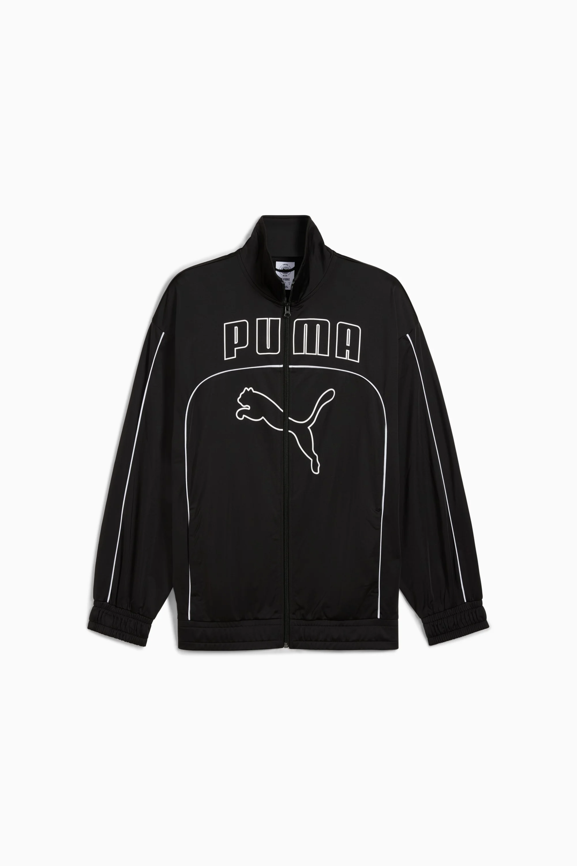 PRODUCT STORY This is the FUTURE.PUMA.ARCHIVE. This street-inspired collection blends the essence of our past with the limitless possibilities of our future. Retro yet forward-thinking, these styles are designed to make a statement. FEATURES & BENEFITS - As part of the RE:FIBRE program, this garment is made of at least 95% recycled material from textile waste and other used materials DETAILS - Style: 632082_01 - Color: PUMA Black - Fit: Relaxed - Main material: Tricot - Neck: Stand up collar - Long sleeves - Fastener: Full zip - Length: Standard jacket - Ribbed cuffs and hem - Pockets: Side Pocket MATERIAL INFORMATION - Upper Pocket Bag: 100% polyester - Shell: 100% polyester - Lower Pocket Bag: 100% polyester