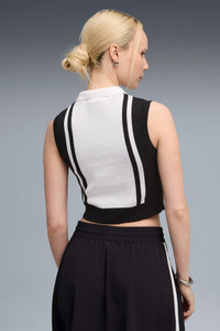 PRODUCT STORY This is the FUTURE.PUMA.ARCHIVE. This street-inspired collection blends the essence of our past with the limitless possibilities of our future. Retro yet forward-thinking, these styles are here to make a statement. FEATURES & BENEFITS - Made with at least 50% recycled materials. DETAILS - Style: 632126_01 - Color: PUMA Black-PUMA White - Fit: Slim - Neck: Ribbed stand-up collar and zip - Sleeveless - Ribbed waistband and armhole - Length: Short MATERIAL INFORMATION - Shell: 60% cotton, 40% polyester - Collar: 58% cotton, 40% polyester, 1% elastane, 1% nylon - Top Hem: 58% cotton, 39% polyester, 2% nylon, 1% elastane - Sleeve Cuff: 56% cotton, 39% polyester, 4% nylon, 1% elastane