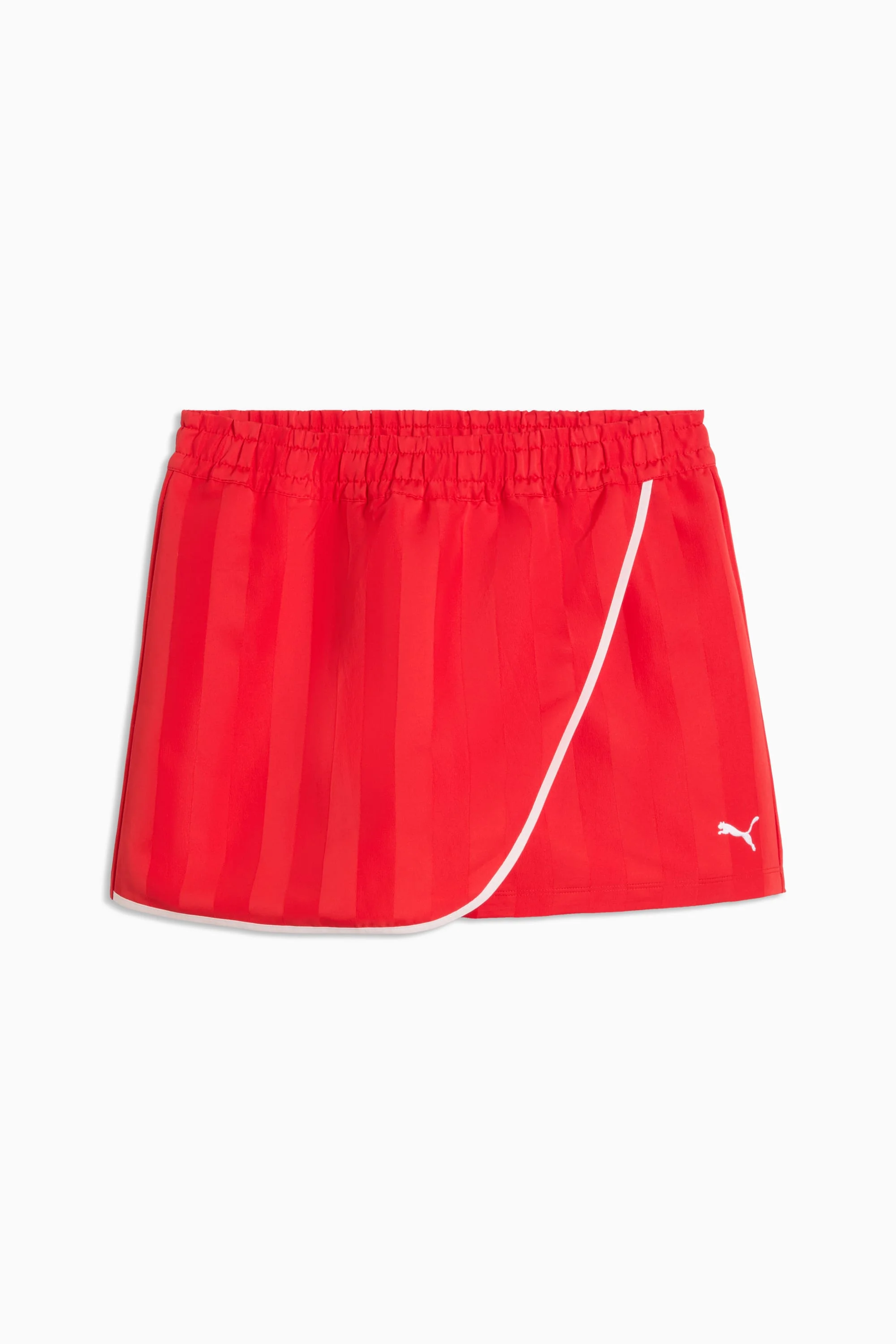 PRODUCT STORY This is the FUTURE.PUMA.ARCHIVE. This street inspired collection merges the essence of our past with the boundless edges of our future. Retro, yet progressive, this skort is here to make a statement. FEATURES & BENEFITS - Made with 100% recycled material excluding trims & decorations. DETAILS - Style: 634594_11 - Color: For All Time Red - Fit: Regular - Main material type: Jacquard weave - Length: Short - Elasticated waistband - Fabric overlay for skirt-like appearance - Embroidered PUMA Cat logo MATERIAL INFORMATION - Shell: 100% polyester