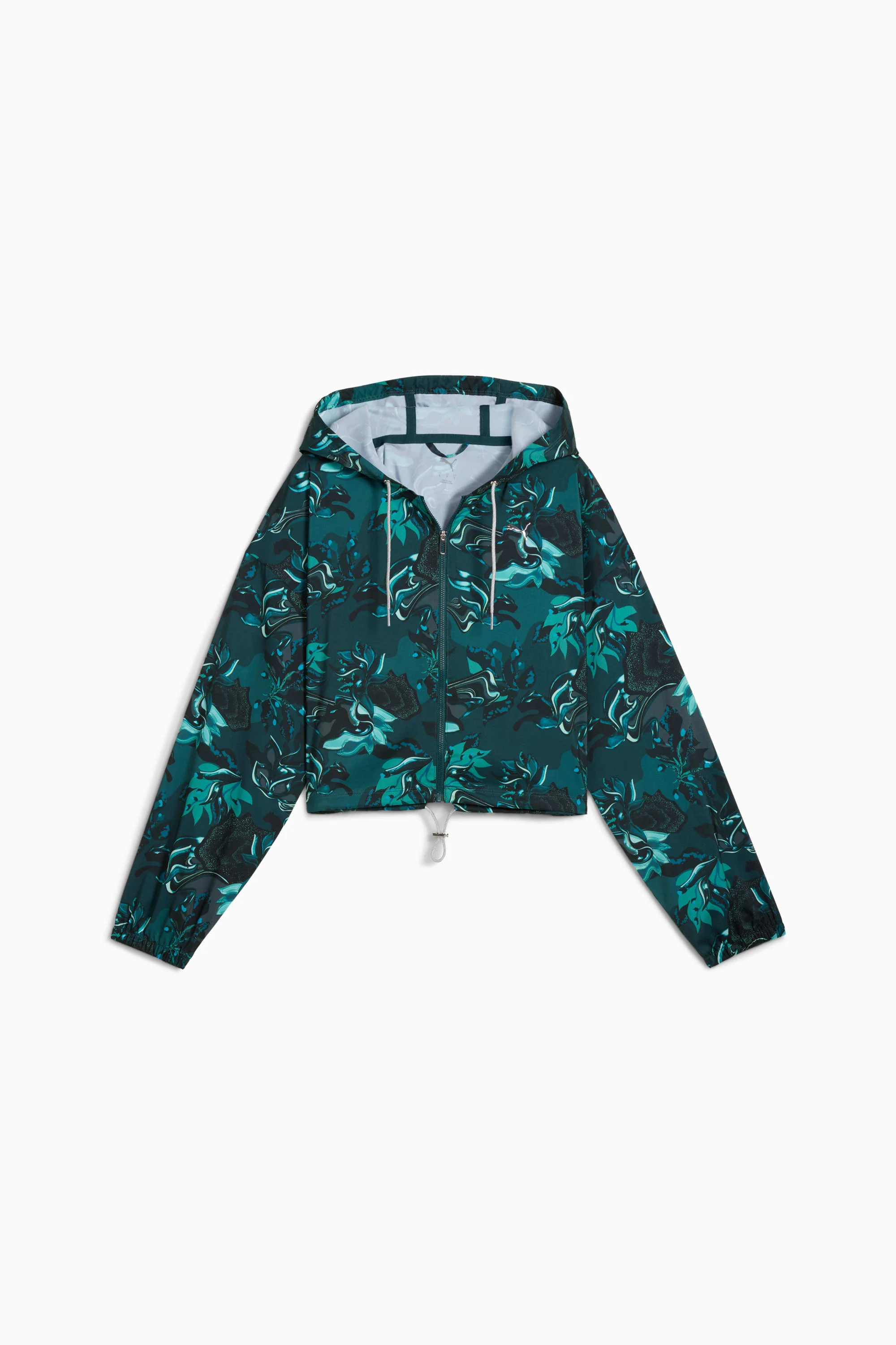 PRODUCT STORY The GREEN TERRAIN collection focuses on innovative, functional styles for intense gym or studio sessions. Take charge of your training with this short-length woven jacket, featuring dryCELL technology to keep you dry and a hood with drawcords for a personalized fit. FEATURES & BENEFITS - dryCELL: Performance technology designed to wick moisture from the body and keep you free of sweat during exercise - Made with at least 50% recycled materials. DETAILS - Style: 527493_75 - Color: Green Terrain - Fit: Regular - Main material: Plain weave - Hooded - Long sleeves - Fastener: Full zip - Length: Short jacket