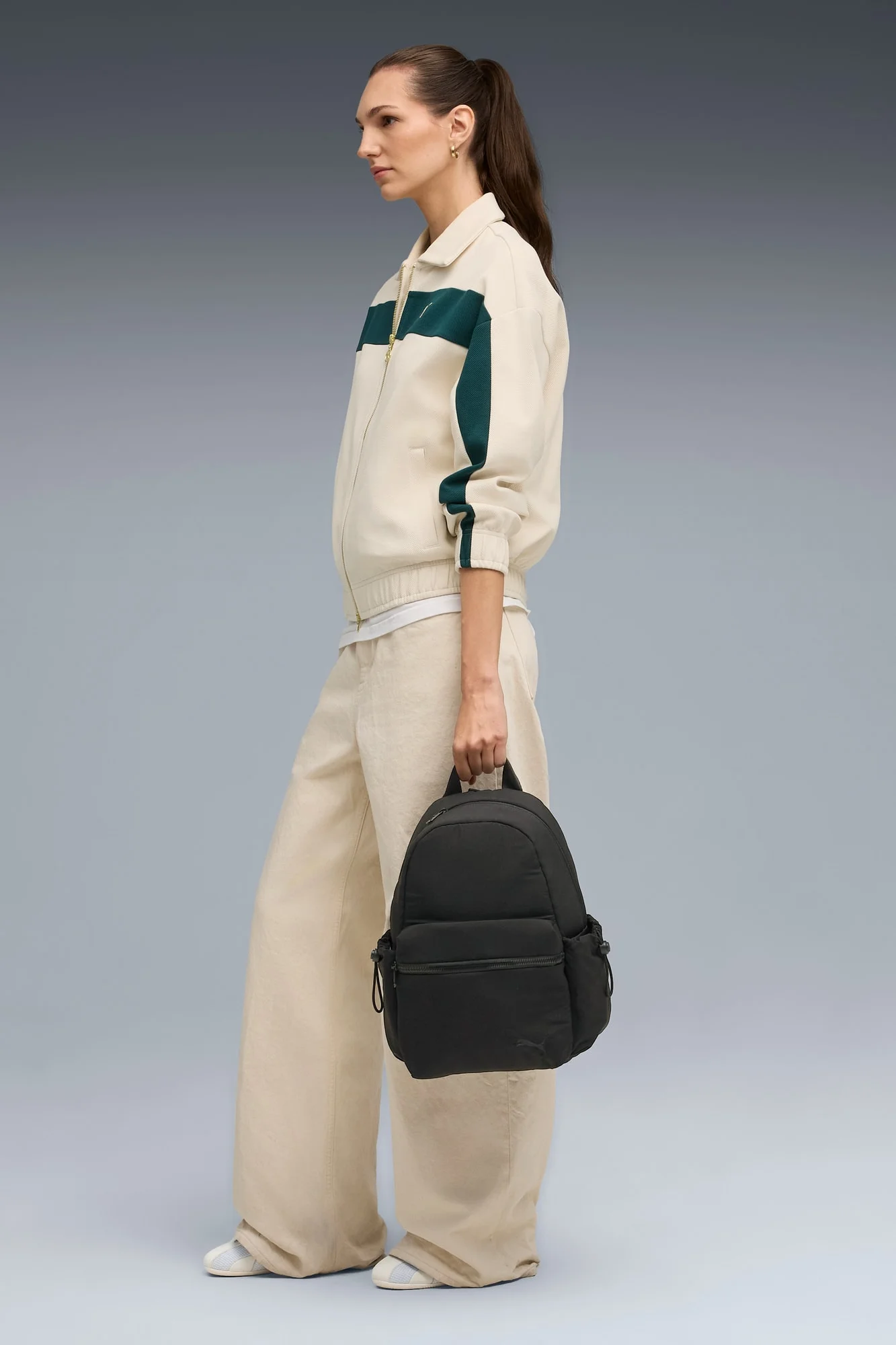 PRODUCT STORY PUMA's HER collection is all about empowering style with a fresh, bold twist. Designed specifically for women, it combines athletic-inspired designs with effortless elegance. Whether you're working out, running errands, or hanging out with friends, the HER collection keeps you feeling confident, comfortable, and ready for whatever comes your way. FEATURES & BENEFITS - Made with at least 90% recycled materials. DETAILS - Style: 091714_01 - Color: PUMA Black - Two-way reversed zip opening into main compartment - Exposed front zip pocket for more storage - Two side pockets with adjustable opening with drawcord string and cord stopper - Internal soft-lining sleeve to stow away your belongings - Volume: 13L - Dimensions: H37cm x W25cm x D12cm - Adjustable webbing shoulder straps - PUMA Youth: Recommended for older kids between 8 and 16 years + MATERIAL INFORMATION - Lining: 100% polyester - Shell: 100% nylon - Back: 100% polyester