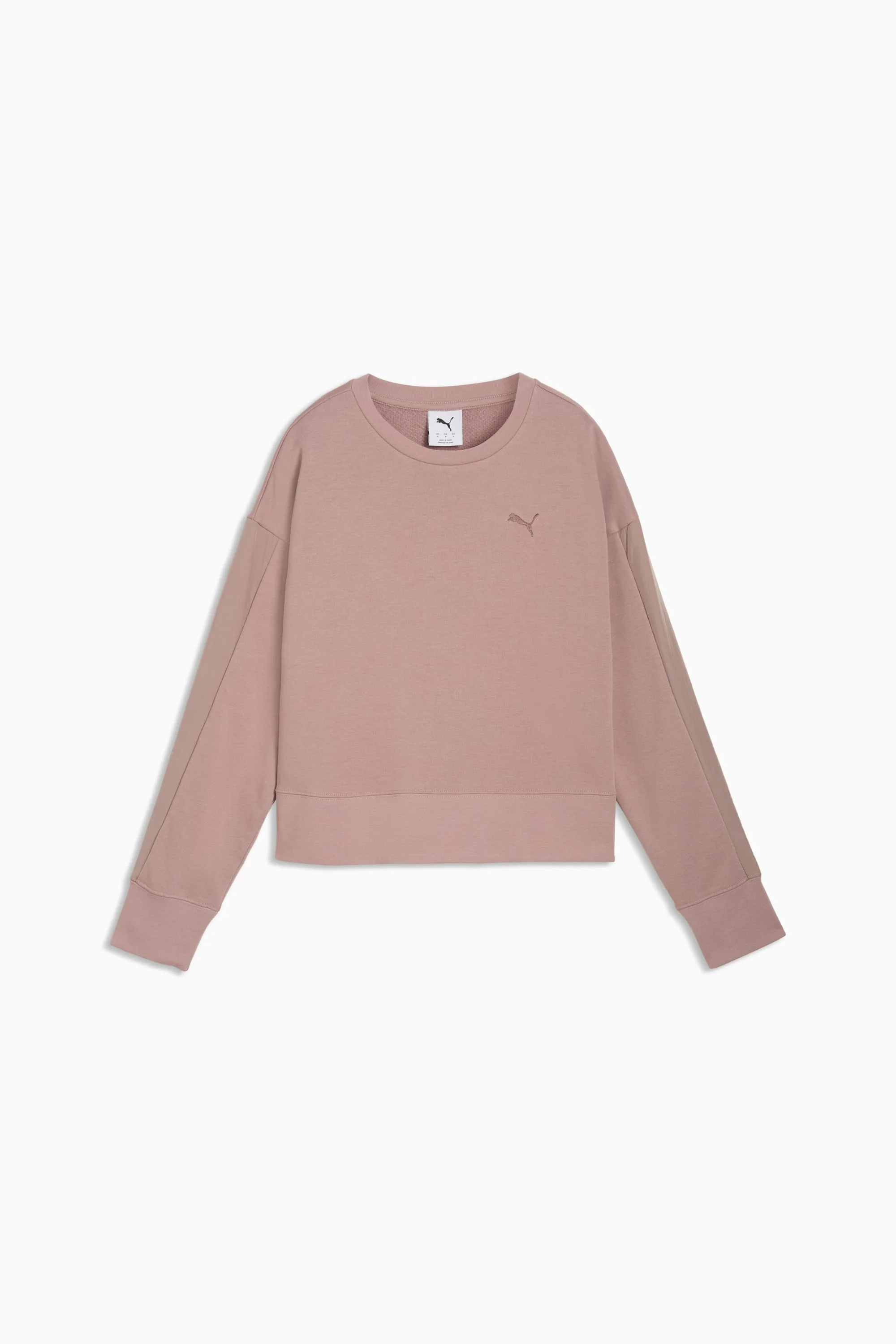 PRODUCT STORY PUMA’s HER collection is all about empowering style with a fresh, bold twist. Designed specifically for women, it blends athletic-inspired design with effortless elegance. Whether you're out on active days, running errands, or meeting friends, the HER collection keeps you feeling confident, comfortable, and ready for whatever comes your way. FEATURES & BENEFITS - Made with at least 50% recycled materials. DETAILS - Style: 691885_88 - Color: Sandstone - Fit: Relaxed - Main material type: French terry - Neck: Crew neck - Long sleeves - Length: Short MATERIAL INFORMATION - Shell: 68% cotton, 32% polyester - Rib: 97% cotton, 3% elastane