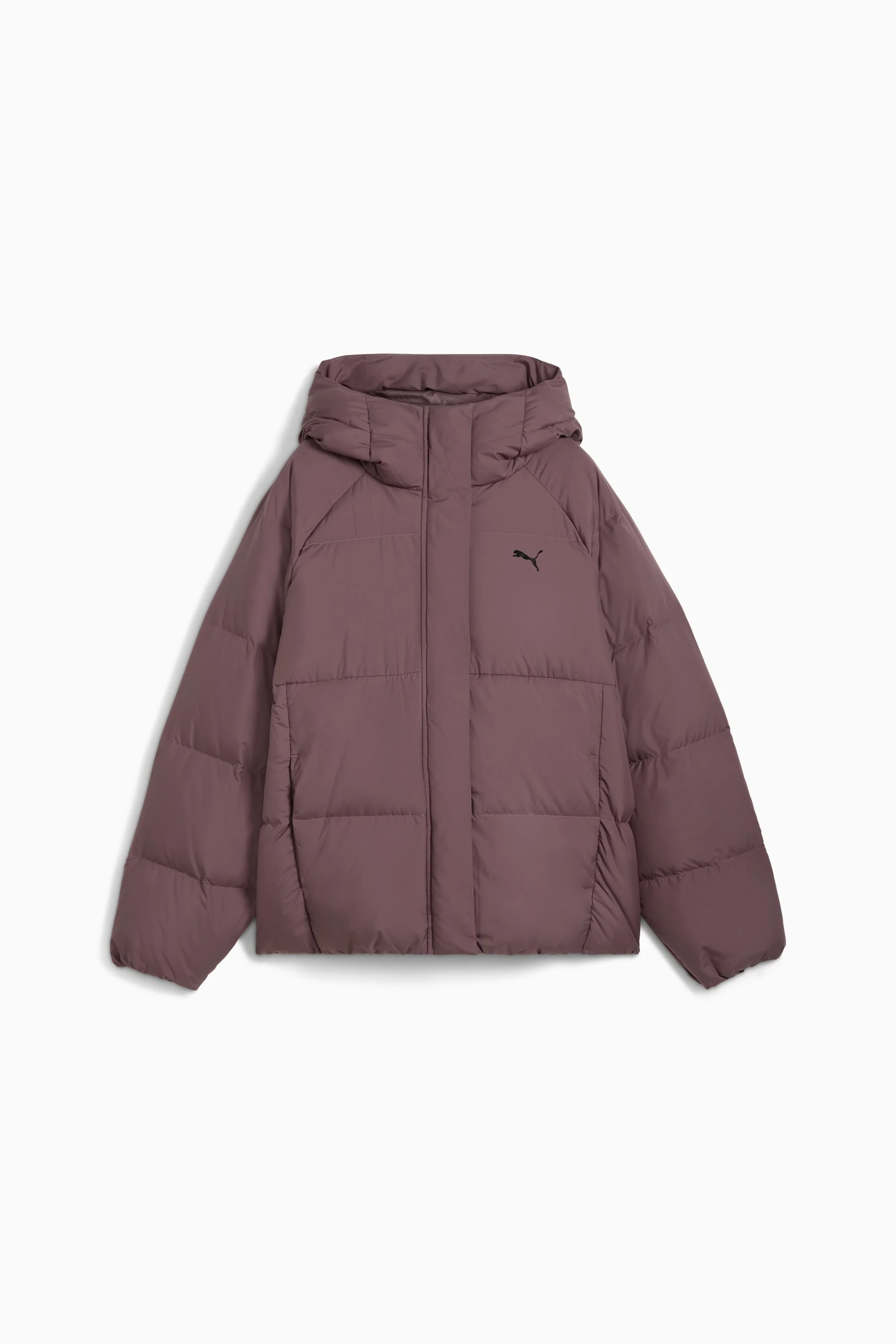 PRODUCT STORY Defy the chill in this down-filled puffer, featuring windCELL fabric and a high-collar hood for extra warmth. Fleece-lined pockets keep your hands cozy, while the elastic cuffs lock in heat. Perfect for frosty mornings or evening strolls. Stay warm, stay stylish, and always stay PUMA-ready. FEATURES & BENEFITS - Water-repellent - windCELL: Technology designed to protect against the wind and keep you comfortable during exercise - Made with Responsible Down Standard certified down DETAILS - Style: 688392_88 - Color: Raisin - Fit: Relaxed - Main material: Plain weave - Neck: Roll neck - Long sleeves - Fastener: Full zip - Length: Regular - Pockets: Zip Pocket, Seam Pocket - Cuffs and hem with inner elastication MATERIAL INFORMATION - Body Filling: 90% duck down, 10% feather - Hood Filling: 100% polyester - Lining: 100% polyester - Shell: 100% polyester - Lower Pocket Bag: 100% polyester