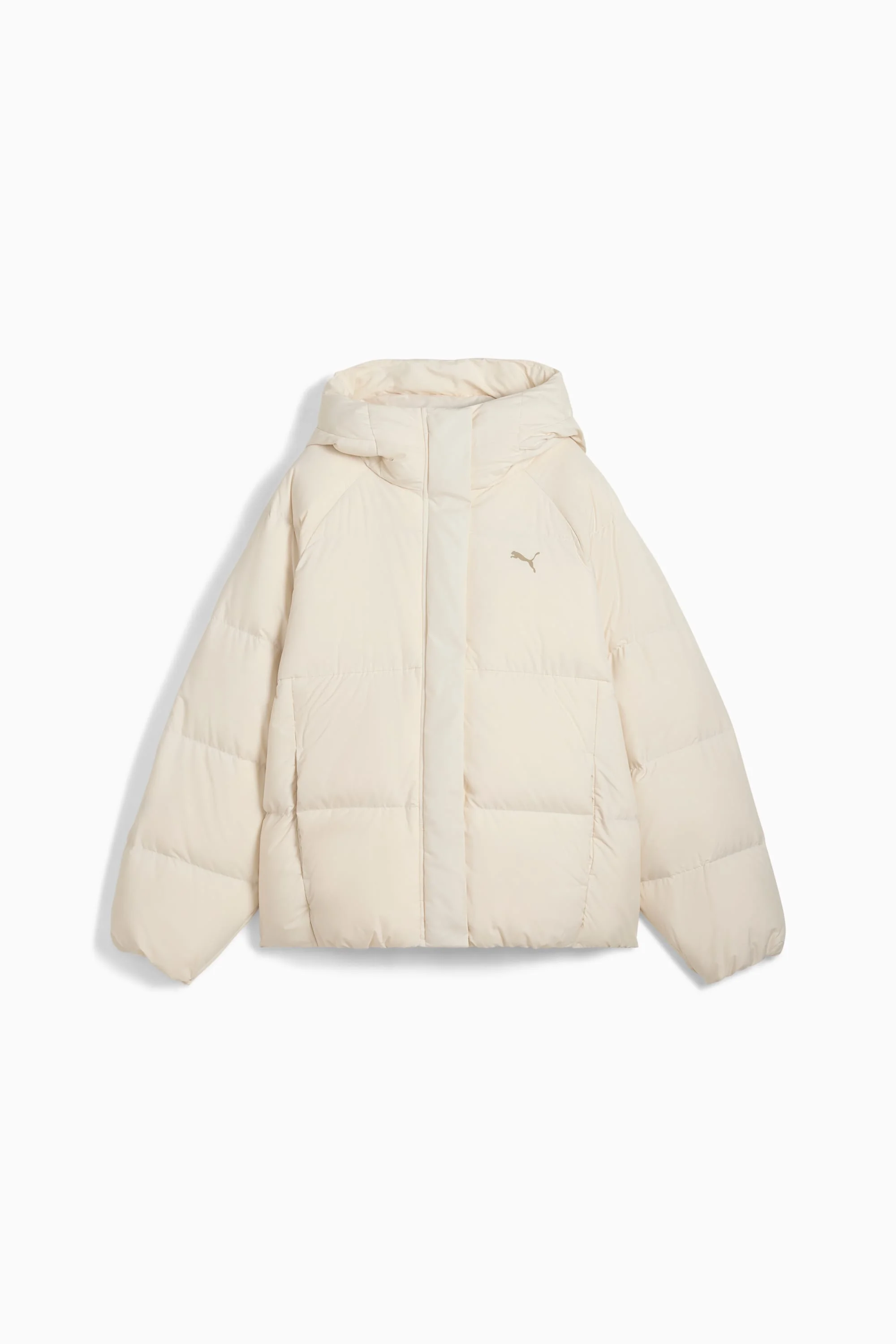 PRODUCT STORY Defy the chill in this down-filled puffer, featuring windCELL fabric and a high-collar hood for extra warmth. Fleece-lined pockets keep your hands cozy, while the elastic cuffs lock in heat. Perfect for frosty mornings or evening strolls. Stay warm, stay stylish, and always stay PUMA-ready. FEATURES & BENEFITS - Water-repellent - windCELL: Technology designed to protect against the wind and keep you comfortable during exercise - Made with Responsible Down Standard certified down DETAILS - Style: 688392_87 - Color: Alpine Snow - Fit: Relaxed - Main material: Plain weave - Neck: Roll neck - Long sleeves - Fastener: Full zip - Length: Regular - Pockets: Zip Pocket, Seam Pocket - Cuffs and hem with inner elastication MATERIAL INFORMATION - Body Filling: 90% duck down, 10% feather - Hood Filling: 100% polyester - Lining: 100% polyester - Shell: 100% polyester - Lower Pocket Bag: 100% polyester