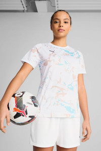 PRODUCT STORY Celebrate Earth Day in style with PUMA's latest drop. Featuring a vibrant all-over print, rib V-collar, and a bold back graphic, this jersey is perfect for making a statement. You will see this jersey worn on-pitch by selected PUMA clubs during pre-match moments on match days around the 2025 Earth Day. Join the movement and wear your passion proudly! FEATURES & BENEFITS - As part of the RE:FIBRE program, this garment is made of at least 95% recycled material from textile waste and other used materials - dryCELL: Performance technology designed to wick moisture from the body and keep you free of sweat during exercise DETAILS - Style: 659923_25 - Color: PUMA White-Light Sand - Regular fit - Double face jacquard material - Short sleeves - Ideal for training sessions, leveraging the new teamCUP jersey silhouette - All-over graphic print with earthy and water tones MATERIAL INFORMATION - Shell: 100% polyester