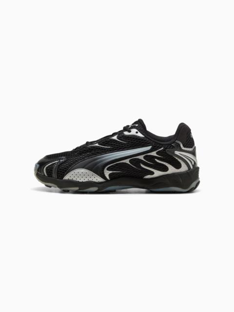 PRODUCT STORY In the 2000s, performance shoes sought new ways to maximize energy. In running, that meant new takes on material play and thick soles, including the PUMA Inhale. It featured exaggerated contours and curves on its upper, inspired by the proper breathing needed to excel at and maximize performance. The newest member to the inhale family features a textile and synthetic leather base and embossed metallic detailing. DETAILS - Style: 406475_03 - Color: Alpine Snow-Desert Dust - Regular fit - Lace closure - Synthetic leather overlays - Rubber sole - Rounded toe MATERIAL INFORMATION - Midsole: 100% Synthetic - Sockliner: 100% Textile - Outsole: 100% Rubber - Upper: 50.10% Textile, 49.90% Synthetic - Lining: 100% Textile