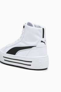 PRODUCT STORY Keep your style simple with the latest high-top version of our Kaia sneakers. They have a cushioned lining for all-day comfort and a small platform for extra elevation. The classic monochrome color scheme makes them a versatile addition to any wardrobe. FEATURES & BENEFITS - SOFTFOAM+: Step-in comfort sockliner designed to provide soft cushioning thanks to its extra thick heel - The upper of this shoe is made with at least 20% recycled materials as a step toward a better future DETAILS - Style: 392325_01 - Color: PUMA White-PUMA Black - Textile upper - Synthetic midsole - Rubber outsole - PUMA Formstrip on the lateral sides - PUMA Wordmark on the heel MATERIAL INFORMATION - Midsole: 100% Synthetic - Sockliner: 100% Textile - Outsole: 100% Rubber - Upper: 86.02% Textile, 13.98% Synthetic - Lining: 100% Textile