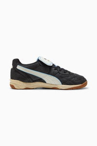 PRODUCT STORY We're bringing it back with our soccer icon: The King Indoor. In the early 2000s, this shoe represented youth style culture, and today we're bringing it back to inspire the next generation. This indoor soccer shoe goes beyond the sport and has become a style icon both on and off the field. DETAILS - Style: 403628_01 - Color: PUMA Black-Warm White - Fit: Regular - Toe: Rounded - Fastener: Laces - Lining: Textile - Heel type: Flat - Midsole: EVA - Outsole: Rubber - Detachable tongue cover