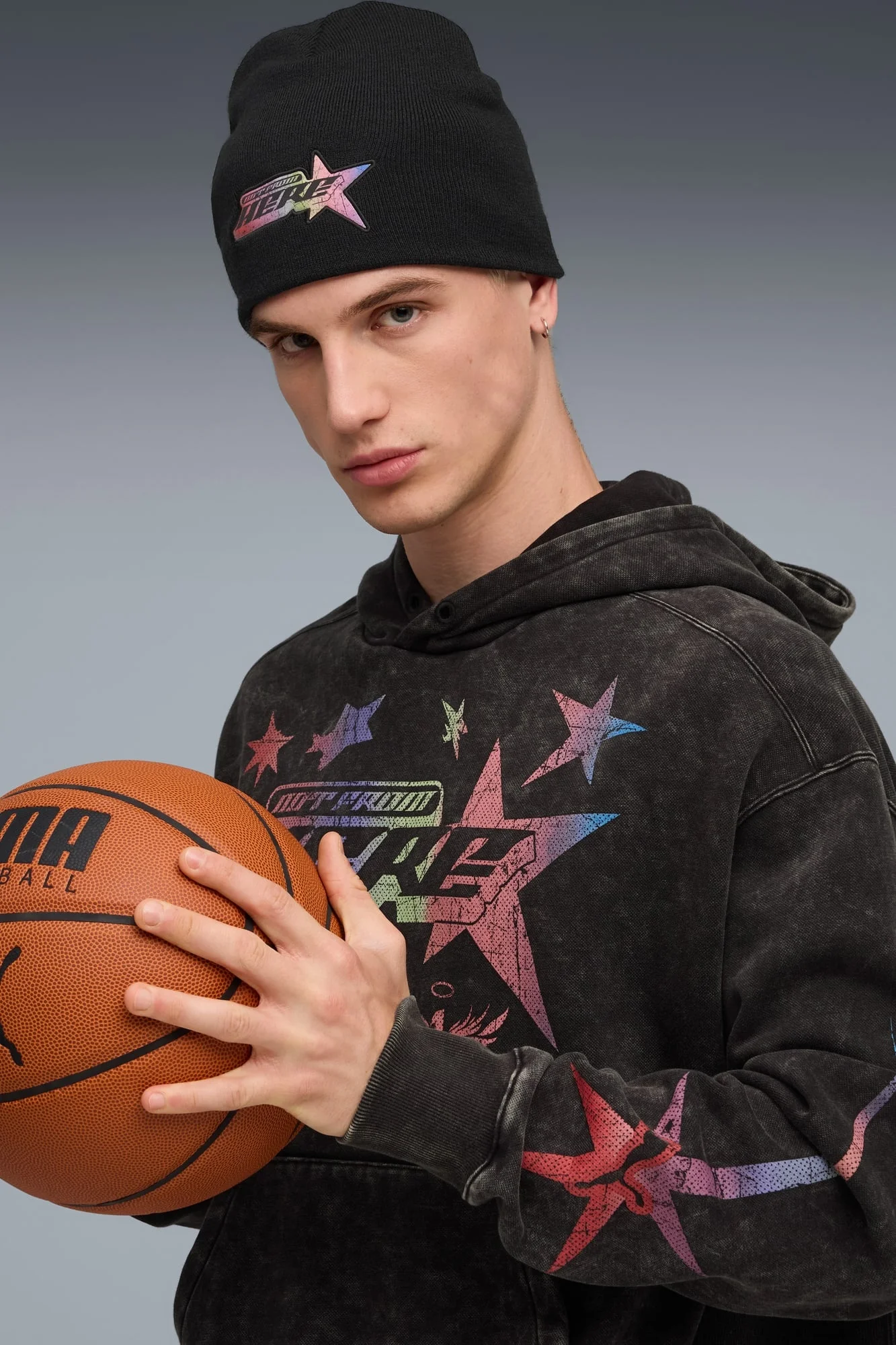PRODUCT STORY The LaMelo collection by PUMA is a testament to the player's superstar status. Capture some of the magical Melo essence for yourself with these statement pieces featuring bold details and the LaMelo Ball touch. FEATURES & BENEFITS - Made with at least 50% recycled materials. DETAILS - Style: 026622_01 - Color: PUMA Black - Beanie style hat - Cuffless - Graphic on the front - LaMelo Ball branding details - PUMA branding details MATERIAL INFORMATION - Lining: 61% polyester, 39% acrylic - Shell: 61% polyester, 39% acrylic