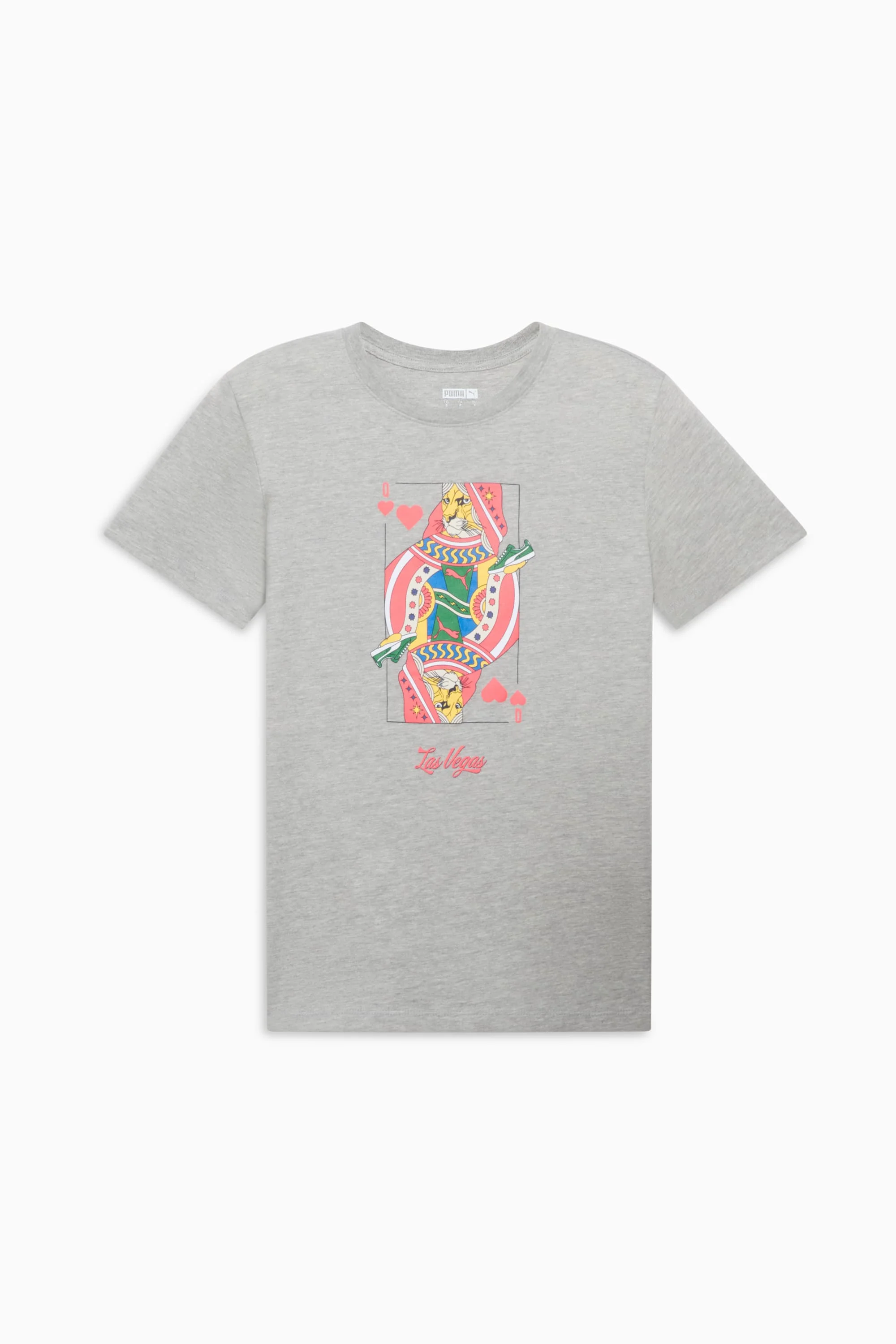 PRODUCT STORY Dealer's choice? This Las Vegas-inspired tee boasts not only PUMA branding for a cool look, but is also made from 100% cotton for a comfortable fit. You can't win if you don't play. DETAILS - Style: 633221_04 - Color: Light Gray Heather - 100% cotton - Short sleeves - Crew neck - Comfort fit - Regular length - PUMA branding details