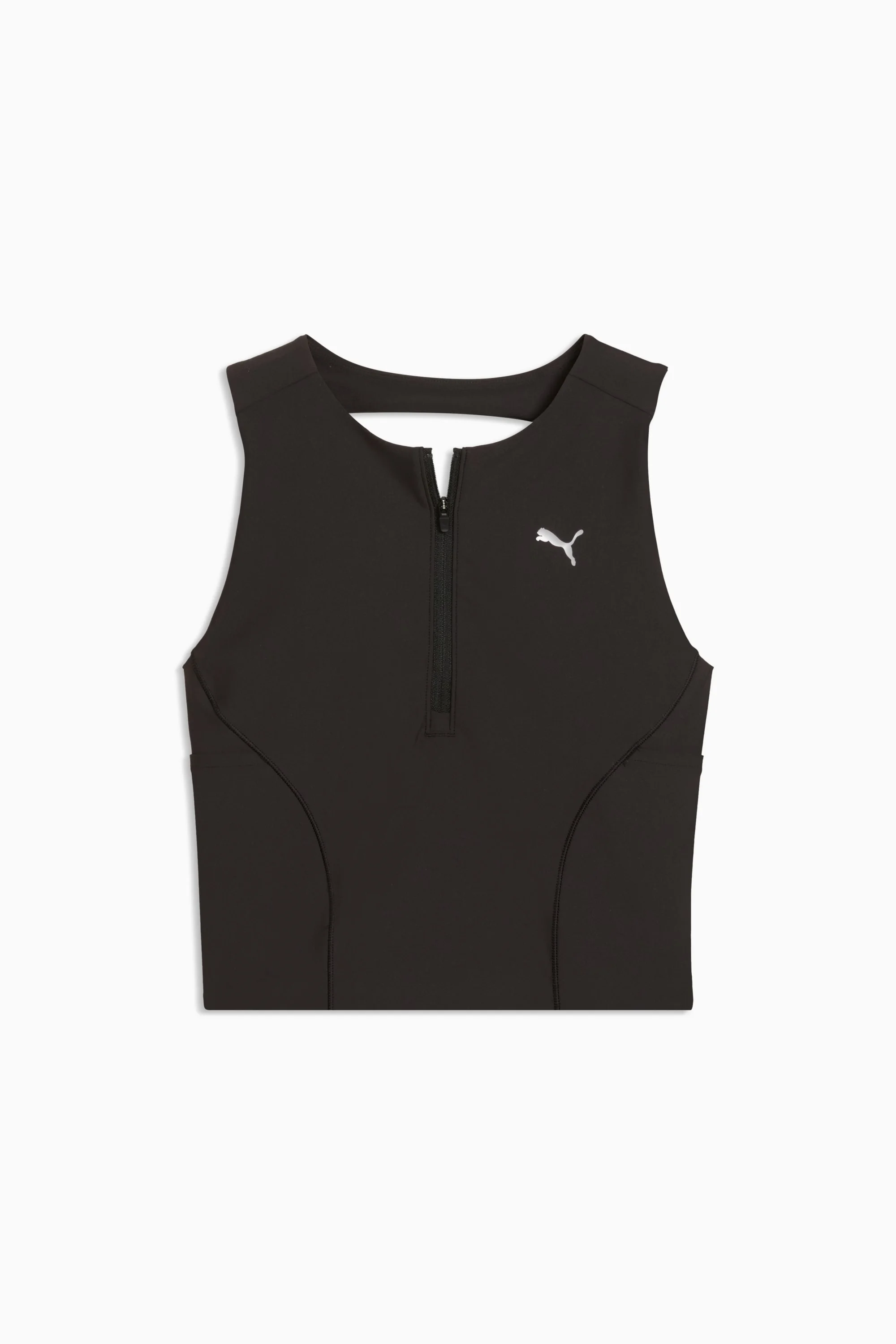 PRODUCT STORY Lightweight, stretchy, and built for your pace – this running crop top gives you a stylish edge on every kilometre. LIGHTSTRIDE material moves with you, dryCELL tech keeps sweat in check, and drop-in pockets stash your essentials. FEATURES & BENEFITS - MOISTURE MANAGEMENT: Technical dryCELL fabrics wick moisture away from the skin to help keep you dry and comfortable - Made with at least 50% recycled materials. DETAILS - Style: 528428_01 - Color: PUMA Black - Fit: Tight - Main material type: Tricot - Neck: Crew neck - Sleeveless - Fastener: Quarter zip - Length: Cropped MATERIAL INFORMATION - Strap: 100% polyester - Inner Shell: 87% polyester, 13% elastane - Top Waistband: 77% polyester, 23% elastane