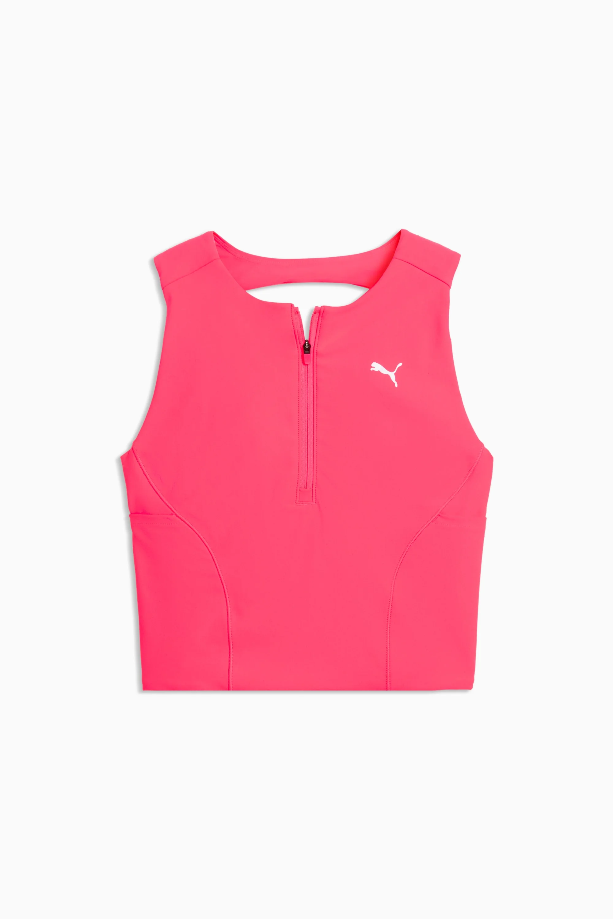 PRODUCT STORY Lightweight, stretchy, and built for your pace – this running crop top gives you a stylish edge on every kilometre. LIGHTSTRIDE material moves with you, dryCELL tech keeps sweat in check, and drop-in pockets stash your essentials. FEATURES & BENEFITS - MOISTURE MANAGEMENT: Technical dryCELL fabrics wick moisture away from the skin to help keep you dry and comfortable - Made with at least 50% recycled materials. DETAILS - Style: 528428_23 - Color: Pure Pink - Fit: Tight - Main material type: Tricot - Neck: Crew neck - Sleeveless - Fastener: Quarter zip - Length: Cropped MATERIAL INFORMATION - Strap: 100% polyester - Inner Shell: 87% polyester, 13% elastane - Top Waistband: 77% polyester, 23% elastane