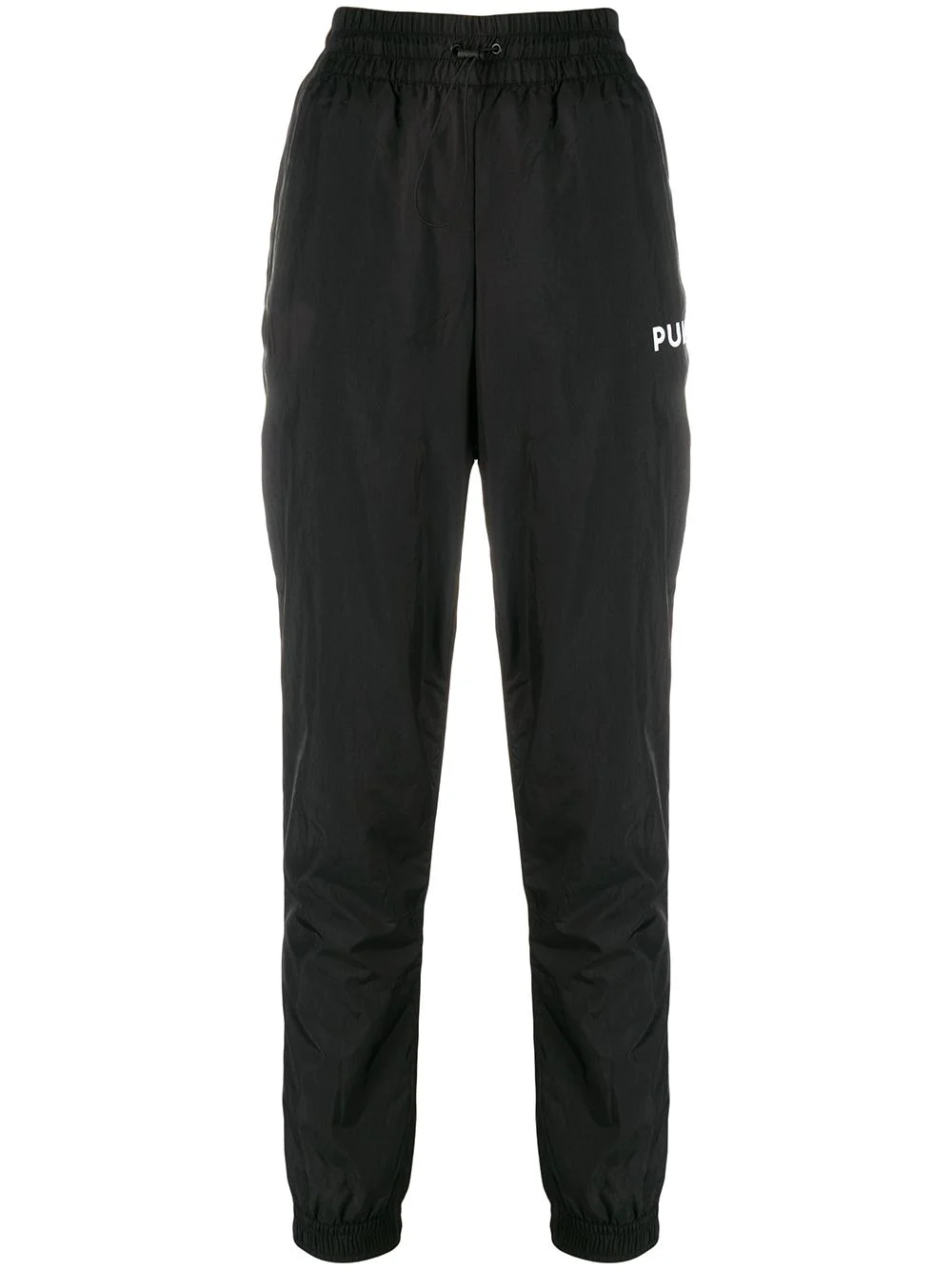logo printed track pants Black logo printed track pants from PUMA featuring an elasticated drawstring waist, a relaxed fit, side slit pockets, a straight leg and gathered ankles. Imported Composition Lining: Polyester 100% Outer: Nylon 100% SIZE & FIT Model measurements Height 5 ft 10 in(1.79 m) Bust/Chest 33.46 in(85 cm) Hips 35.43 in(90 cm) Waist 25.19 in(64 cm) Washing instructions Machine Wash