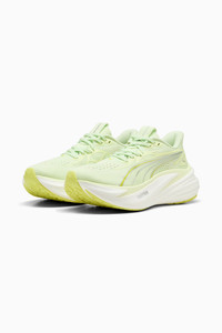 PRODUCT STORY Feel the bounce with the MagMax NITRO™ 2. Packed with the highest stack of NITROFOAM™ cushioning, it delivers an ultra-plush ride that energises every step. The engineered mesh upper keeps things cool and secure, while the PUMAGRIP outsole provides steady traction. Mile after mile, these shoes bring effortless comfort and performance. FEATURES & BENEFITS - The upper of the shoes is made with at least 30% recycled materials. DETAILS - Style: 312126_04 - Color: Apple Spritz-Lux Lime - Width: Regular - Toe Type: Rounded - Fastener: Laces - Heel type: Flat - Stack Height: 46mm / 38mm - Cushioning: Max - Heel-to-toe drop: 8mm - Pronation: Overpronation - Weight: 275g (UK8) MATERIAL INFORMATION - Sockliner: 100% Textile - Outsole: 100% Rubber - Upper: 70.42% Textile, 29.58% Synthetic - Lining: 100% Textile