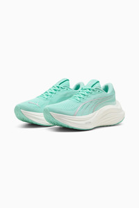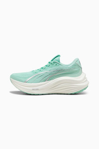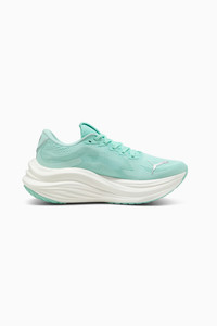 PRODUCT STORY Experience an exhilarating bounce like never before with the MagMax NITRO™. Boasting an impressive amount of cutting-edge NITROFOAM™ technology, these shoes will effortlessly propel you from one mile to the next, filling your stride with excitement and ease. Around the foot you'll find a comfortable mesh, deluxe knitted tongue and cushioned heel. PUMAGRIP protects the precious NITROFOAM™ and provides top-notch traction keeping you steady on your feet. FEATURES & BENEFITS - The upper of the shoes is made with at least 20% recycled materials - NITROFOAM™: Advanced nitrogen-infused foam designed to provide superior responsiveness and cushioning in a lightweight package - PUMAGRIP: A durable rubber outsole that offers multi-surface traction. DETAILS - Style: 310089_12 - Color: Mint Melt-Speed Blue - Regular fit - Engineered mesh upper - Stack height: 46mm / 38mm - Weight: 290g (UK8) - Heel-to-toe drop: 8mm - Recommended for: neutral pronators MATERIAL INFORMATION - Midsole: 100% Synthetic - Sockliner: 100% Textile - Outsole: 100% Rubber - Upper: 87% Textile, 13% Synthetic - Lining: 100% Textile