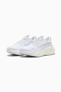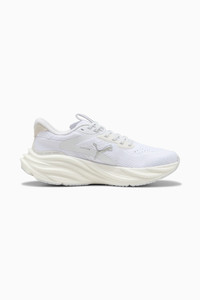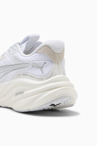 PRODUCT STORY Magnify 3 is built for supreme cushioning and all-day comfort. Designed for any run where softness and support matter most, it features a breathable engineered mesh upper and stacked NITROFOAM™ cushioning for a smooth, responsive ride. Whether you're going the distance or running purely for the joy of it, this shoe is made to magnify your comfort and keep you moving. FEATURES & BENEFITS - BREATHABILITY: Premium engineered knit material engineered for breathability and stretch, reinforced with PWRTAPE for durability and lockdown - NITROFOAM™: Innovative nitrogen-infused foam technology that uses premium raw materials to provide maximum energy return - PUMAGRIP: Outsole is made of durable rubber compound for multi-surface traction - The upper of the shoes is made with at least 30% recycled materials. DETAILS - Style: 311047_02 - Color: PUMA White-PUMA Silver - Fit: Regular - Toe type: Rounded - Fastener: Laces - Heel type: Flat - Heel-to-toe drop: 10mm - Stack Height: 40mm / 30mm - Weight (UK4.5): 215g - Recommended for neutral pronators MATERIAL INFORMATION - Midsole: 100% Synthetic - Sockliner: 100% Textile - Outsole: 100% Rubber - Upper: 75% Textile, 22% Synthetic, 3% Leather - cow - Lining: 100% Textile