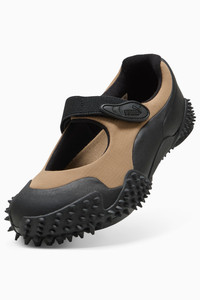 PRODUCT STORY Mostro isn't a shoe for just anyone. For over two decades, it's been worn by those who defy conventions and reject the norm. Taking its name from the Italian word for monster, Mostro is a hybrid creation that draws from two diverse realms: the sleek sprinting spikes of the '60s and the surfing shoes of the '80s. To this day, it continues to captivate with its distinctive, sculptural design, low-profile shape, and avant-garde, spiked sole. With the Mostro Fey, we combine the original's signature bold design with a Mary Jane silhouette. FEATURES & BENEFITS - Vegan certified product. DETAILS - Style: 405406_02 - Color: Toasted-PUMA Black - Fit: Regular - Toe Type: Rounded - Fastener: Hook-and-loop - Lining: Textile - OrthoLite® sockliner - Heel Type: Flat - Midsole: Rubber - Outsole: TPU and rubber - Rubber spikes on the sole as design detail MATERIAL INFORMATION - Sockliner: 100% Textile - Outsole: 60% Rubber, 40% Synthetic - Upper: 54.33% Textile, 45.67% Synthetic - Lining: 100% Textile