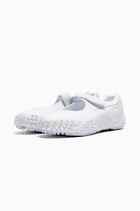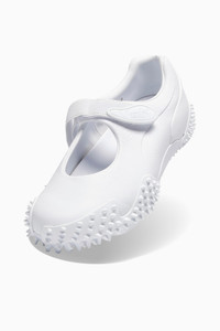 PRODUCT STORY Mostro isn't a shoe for just anyone. For over two decades, it's been worn by those who defy conventions and reject the norm. Taking its name from the Italian word for monster, Mostro is a hybrid creation that draws from two diverse realms: the sleek sprinting spikes of the '60s and the surfing shoes of the '80s. To this day, it continues to captivate with its distinctive, sculptural design, low-profile shape, and avant-garde spiked sole. With the Mostro Fey, we combine the original's signature bold design with a Mary Jane silhouette. DETAILS - Style: 405405_02 - Color: PUMA White - Fit: Regular - Toe Type: Rounded - Fastener: Hook-and-loop closure - Lining: Synthetic - OrthoLite® sockliner - Heel type: Flat - Midsole: Rubber - Outsole: TPU and rubber - Rubber spikes on the outsole as design detail MATERIAL INFORMATION - Sockliner: 100% Leather - cow - Outsole: 60% Rubber, 40% Synthetic - Upper: 93.44% Leather - cow, 5.40% Textile, 1.16% Synthetic - Lining: 100% Leather - cow