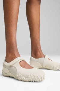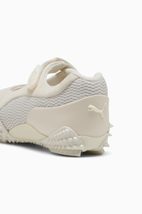 PRODUCT STORY First released in 1999, the Mostro has become one of PUMA's best-selling shoes ever. Affectionally named after the Italian word for "monster", it was originally inspired by two sports shoes – a sprinting spike from 1968 and a surfing shoe from the 80s. With the Mostro Fey we combine it's signature, bold design with a delicate Mary Jane silhouette for a look that's entirely new and undeniably PUMA. This premium version of the Mostro Fey is constructed with a suede and mesh upper. DETAILS - Style: 403367_02 - Color: Warm White-Vapor Gray - Regular width - Mesh and suede upper - Elasticated hook-and-loop closure system - Textile lining - OrthoLite® moulded textile sockliner - Rubber spiked outsole - Outsole wraps the upper - PUMA branding details MATERIAL INFORMATION - Sockliner: 100% Textile - Outsole: 60% Rubber, 40% Synthetic - Upper: 62.69% Leather - cow, 35.94% Textile, 1.37% Synthetic - Lining: 100% Textile