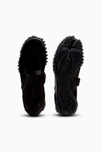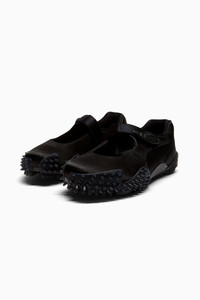 PRODUCT STORY First released in 1999, the Mostro has become one of PUMA's best-selling shoes ever. Affectionately named after the Italian word for "monster," it was originally inspired by two sports shoes – a sprinting spike from 1968 and a surfing shoe from the '80s. With the Mostro Fey, we combine its signature bold design with a delicate Mary Jane silhouette and a shiny satin upper for a look that's entirely new and undeniably PUMA. DETAILS - Style: 403368_02 - Color: PUMA Black-Cool Dark Gray - Regular width - Shiny satin upper - Elasticated strap closure - OrthoLite® moulded sockliner - Textile collar and lining - Rubber outsole - Rubber spikes on the outsole - PUMA branding details MATERIAL INFORMATION - Sockliner: 100% Textile - Outsole: 60% Rubber, 40% Synthetic - Upper: 98.63% Textile, 1.37% Synthetic - Lining: 100% Textile