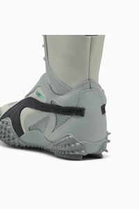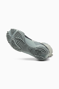 PRODUCT STORY Mostro isn't a shoe for just anyone. For over two decades, it's been worn by those who defy conventions and reject the norm. Taking its name from the Italian word for monster, Mostro is a hybrid creation that draws from two diverse realms: the sleek sprinting spikes of the '60s and the surfing shoes of the '80s. To this day, it continues to captivate with its distinctive, sculptural design, low-profile shape, and avant-garde, spiked sole. This version adds a feminine twist to the original with a mid-cut boot style. DETAILS - Style: 402872_03 - Color: Cool Light Gray-Cool Mid Gray - Fit: Regular - Toe type: Rounded - Fastener: Elastics - Lining: Textile - Heel type: Flat - Leather upper with mesh details - Outsole: Rubber - Rubber spikes on the sole as design detail MATERIAL INFORMATION - Sockliner: 100% Textile - Outsole: 60% Rubber, 40% Synthetic - Upper: 84.08% Leather - cow, 15.35% Textile, 0.57% Synthetic - Lining: 100% Textile