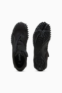 PRODUCT STORY Mostro isn’t a shoe for just anyone. For over two decades it’s been worn by those who defy conventions and eschew the norm. Taking its name from the Italian word for monster, Mostro is a hybrid creation that draws from two diverse realms: the sleek sprinting spikes of the ‘60s and the surfing shoes of the ‘80s. To this day it continues to captivate with its distinctive, sculptural design, low-profile shape, and avant-garde, spiked sole. FEATURES & BENEFITS - The upper of the shoes is made with at least 20% recycled materials. - Vegan certified product. DETAILS - Style: 405194_04 - Color: PUMA Black-PUMA Black - Fit: Regular - Toe Type: Rounded - Fastener: Elasticated hook-and-loop closure system - Lining: Textile - Heel Type: Flat - Rubber spikes on the sole as design detail MATERIAL INFORMATION - Sockliner: 100% Textile - Outsole: 83.70% Rubber, 16.30% Synthetic - Upper: 73.08% Textile, 26.92% Synthetic - Lining: 100% Textile