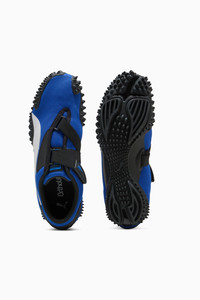 PRODUCT STORY Mostro isn’t a shoe for just anyone. For over two decades it’s been worn by those who defy conventions and eschew the norm. Taking its name from the Italian word for monster, Mostro is a hybrid creation that draws from two diverse realms: the sleek sprinting spikes of the ‘60s and the surfing shoes of the ‘80s. To this day it continues to captivate with its distinctive, sculptural design, low-profile shape, and avant-garde, spiked sole. FEATURES & BENEFITS - The upper of the shoes is made with at least 20% recycled materials. - Vegan certified product. DETAILS - Style: 405194_01 - Color: Mountain Blue-PUMA White - Fit: Regular - Toe Type: Rounded - Fastener: Elasticated hook-and-loop closure system - Lining: Textile - Heel Type: Flat - Rubber spikes on the sole as design detail MATERIAL INFORMATION - Sockliner: 100% Textile - Outsole: 83.70% Rubber, 16.30% Synthetic - Upper: 73.08% Textile, 26.92% Synthetic - Lining: 100% Textile