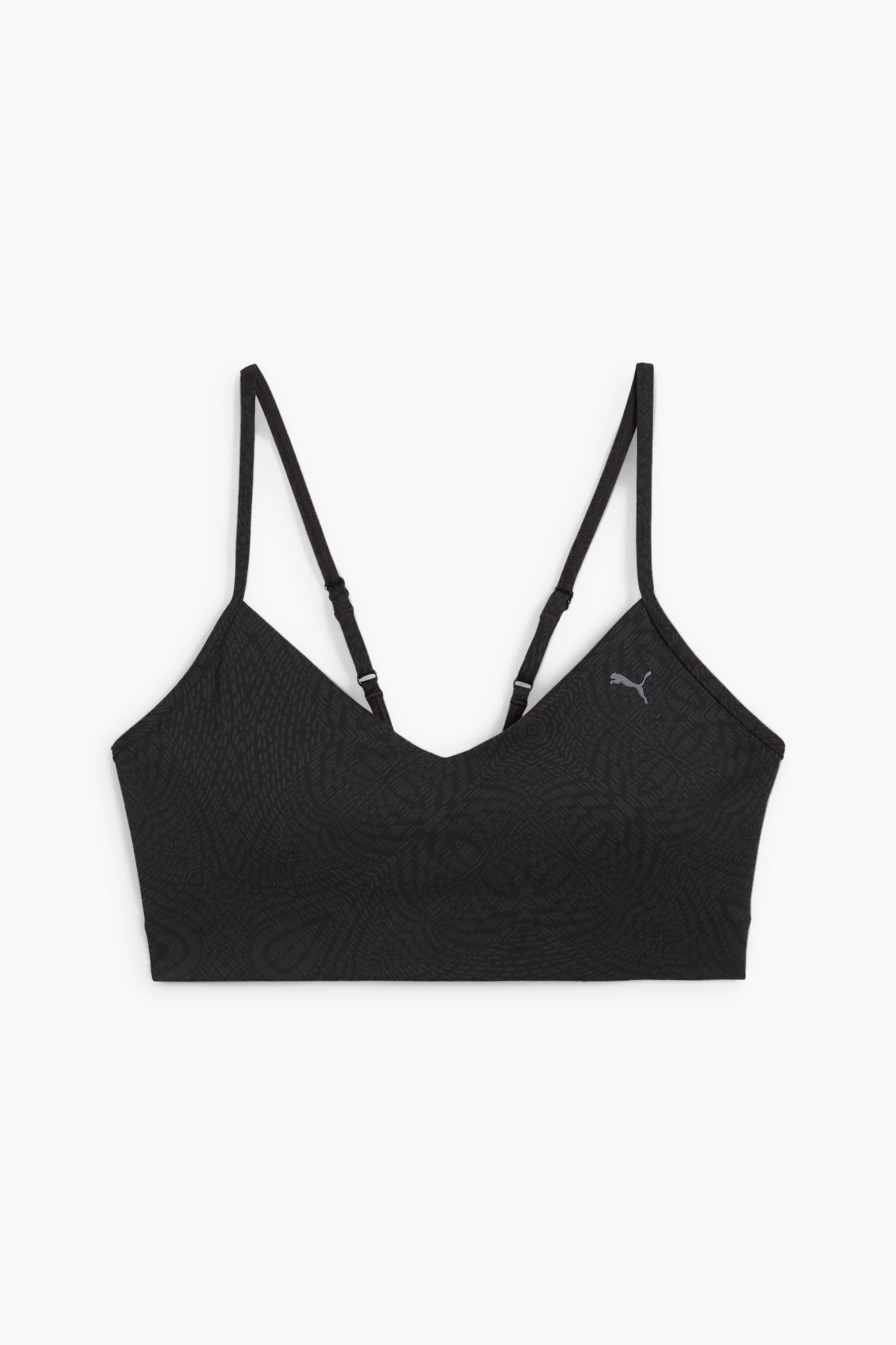 PRODUCT STORY Unleash your inner warrior with PUMA's CLOUDSPUN bra. Designed for all-day wear, it features dryCELL for moisture-wicking, low impact support, and adjustable straps for unrestricted movement. Stay confident and stylish from studio to street. FEATURES & BENEFITS - Made with at least 50% recycled materials - dryCELL: Performance technology designed to wick moisture from the body and keep you free of sweat during exercise - CLOUDSPUN: Custom-milled performance poly/spandex blend, this fabric meets the highest performance standards while still feeling like an ultra soft cotton DETAILS - Style: 526691_01 - Color: PUMA Black - Tight fit - Interlock fabric - Regular length - PUMA branding details MATERIAL INFORMATION - LINING: 94% polyester, 6% elastane - SHELL: 77% polyester, 23% elastane - CUP LINING: 94% polyester, 6% elastane