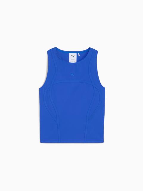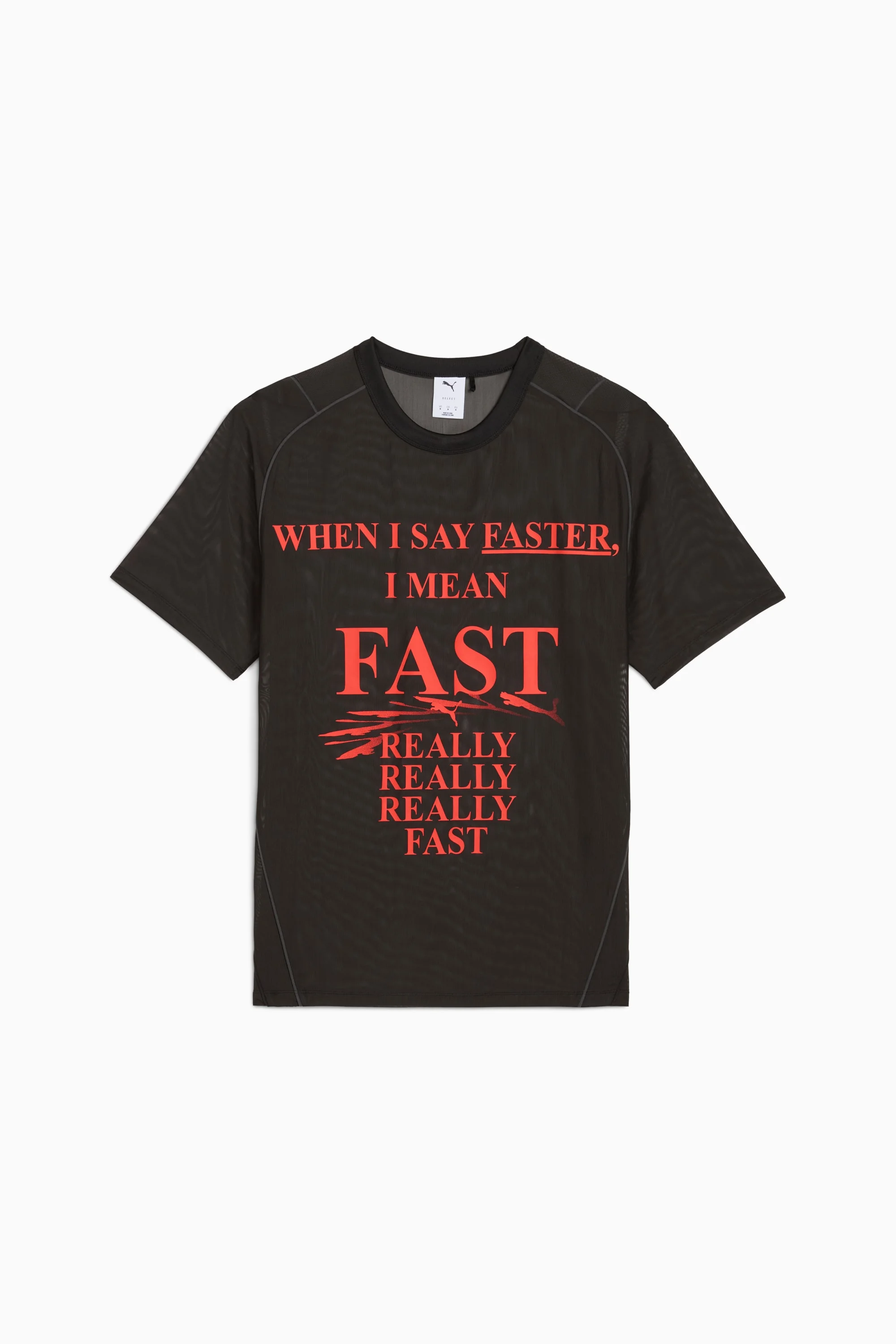 PRODUCT STORY This isn't your parents' nine-to-five. The Nine To Five collection is all about sundown to sun-up, inspired by the golden age of techno in the '90s when experimental music met even more experimental fashion. Today, we honor those all-night trendsetters with this collection of baggy pants, fitted tops, and bold graphics. FEATURES & BENEFITS - Made with at least 50% recycled materials. DETAILS - Style: 632505_01 - Color: PUMA Black - Fit: Relaxed - Main material: Mesh - Neck: Crew neck - Short sleeves - Length: Regular MATERIAL INFORMATION - Shell: 87% polyester, 13% elastane - Collar: 100% polyester