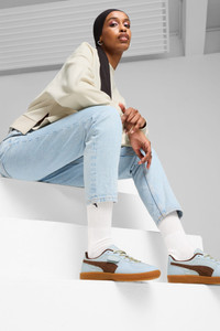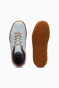 PRODUCT STORY Straight from our archives, it's the PUMA Palermo. This classic terrace shoe debuted in the 80's and now, we've brought it back for the fans. With its signature T-toe construction and classic gum sole, this version features a mesh upper, synthetic overlays, and soccer-inspired embroidery. FEATURES & BENEFITS - Chrome-Free Leather: Made with Chrome-free Leather**chrome content does not exceed the limit standard as per ISO 15115-2019 DETAILS - Style: 397770_01 - Color: Frosted Dew-Gum - Regular fit - Mesh upper - Synthetic toe, heel, and eyestay overlays - Textile lining - Lace closure - Rubber midsole and outsole - Synthetic tongue with football-inspired embroidery details - Synthetic PUMA Formstrip - PUMA branding details MATERIAL INFORMATION - Midsole: 100% Rubber - Sockliner: 100% Textile - Outsole: 100% Rubber - Upper: 67.96% Leather - cow, 28.62% Textile, 3.42% Synthetic - Lining: 100% Textile