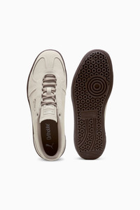 PRODUCT STORY Back in the '80s, the Palermo was a fan favorite in British soccer stadiums, instantly recognizable for its pops of color and classic gum sole. Today, the Palermo has evolved from an icon of soccer culture to a nostalgic streetwear staple, ready for game day and every day. DETAILS - Style: 403262_02 - Color: Alpine Snow-Chestnut Brown - Width: Regular - Toe Type: Rounded - Fastener: Hidden Laces - Heel type: Flat - PUMA Formstrip on the side with heavy stitching detail MATERIAL INFORMATION - Sockliner: 100% Synthetic - Outsole: 100% Rubber - Upper: 100% Leather - cow - Lining: 60% Textile, 40% Synthetic