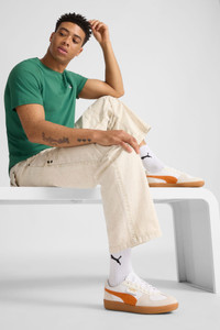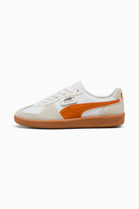 PRODUCT STORY Straight from the archives, it’s the PUMA Palermo. This classic terrace shoe is revived today with its signature T-toe construction, plus extra-bold colorblocking and plush materials. Its design builds on PUMA’s heritage within soccer, while appealing to today’s sneakerheads and terrace fashion mavens. FEATURES & BENEFITS - PUMA’s leather products support responsible manufacturing via the Leather Working Group. www.leatherworkinggroup.com DETAILS - Style: 396464_16 - Color: PUMA White-Warm White-Orange Glo - Low boot - Lace closure - PUMA branding details - Suede PUMA Formstrip - Synthetic leather tongue, eyestay and quarter panel underlay MATERIAL INFORMATION - Midsole: 100% Synthetic - Sockliner: 100% Textile - Outsole: 100% Rubber - Upper: 82.49% Leather - cow, 17.51% Synthetic - Lining: 60% Textile, 40% Synthetic