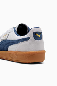 PRODUCT STORY Straight from the archives, it’s the PUMA Palermo. This classic terrace shoe is revived today with its signature T-toe construction, plus extra-bold colorblocking and plush materials. Its design builds on PUMA’s heritage within soccer, while appealing to today’s sneakerheads and terrace fashion mavens. FEATURES & BENEFITS - PUMA’s leather products support responsible manufacturing via the Leather Working Group. www.leatherworkinggroup.com DETAILS - Style: 396464_24 - Color: PUMA White-Dark Indigo - Low boot - Lace closure - PUMA branding details - Suede PUMA Formstrip - Synthetic leather tongue, eyestay and quarter panel underlay MATERIAL INFORMATION - Midsole: 100% Synthetic - Sockliner: 100% Textile - Outsole: 100% Rubber - Upper: 82.49% Leather - cow, 17.51% Synthetic - Lining: 60% Textile, 40% Synthetic