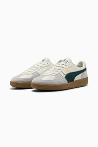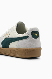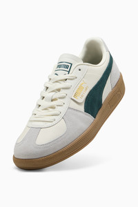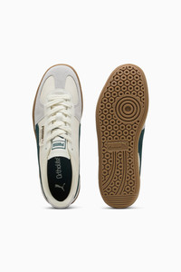 PRODUCT STORY Straight from the archives, it’s the PUMA Palermo. This classic terrace shoe is revived today with its signature T-toe construction, plus extra-bold colorblocking and plush materials. Its design builds on PUMA’s heritage within soccer, while appealing to today’s sneakerheads and terrace fashion mavens. FEATURES & BENEFITS - PUMA’s leather products support responsible manufacturing via the Leather Working Group. www.leatherworkinggroup.com DETAILS - Style: 396464_22 - Color: Warm White-Green Terrain - Low boot - Lace closure - PUMA branding details - Suede PUMA Formstrip - Synthetic leather tongue, eyestay and quarter panel underlay