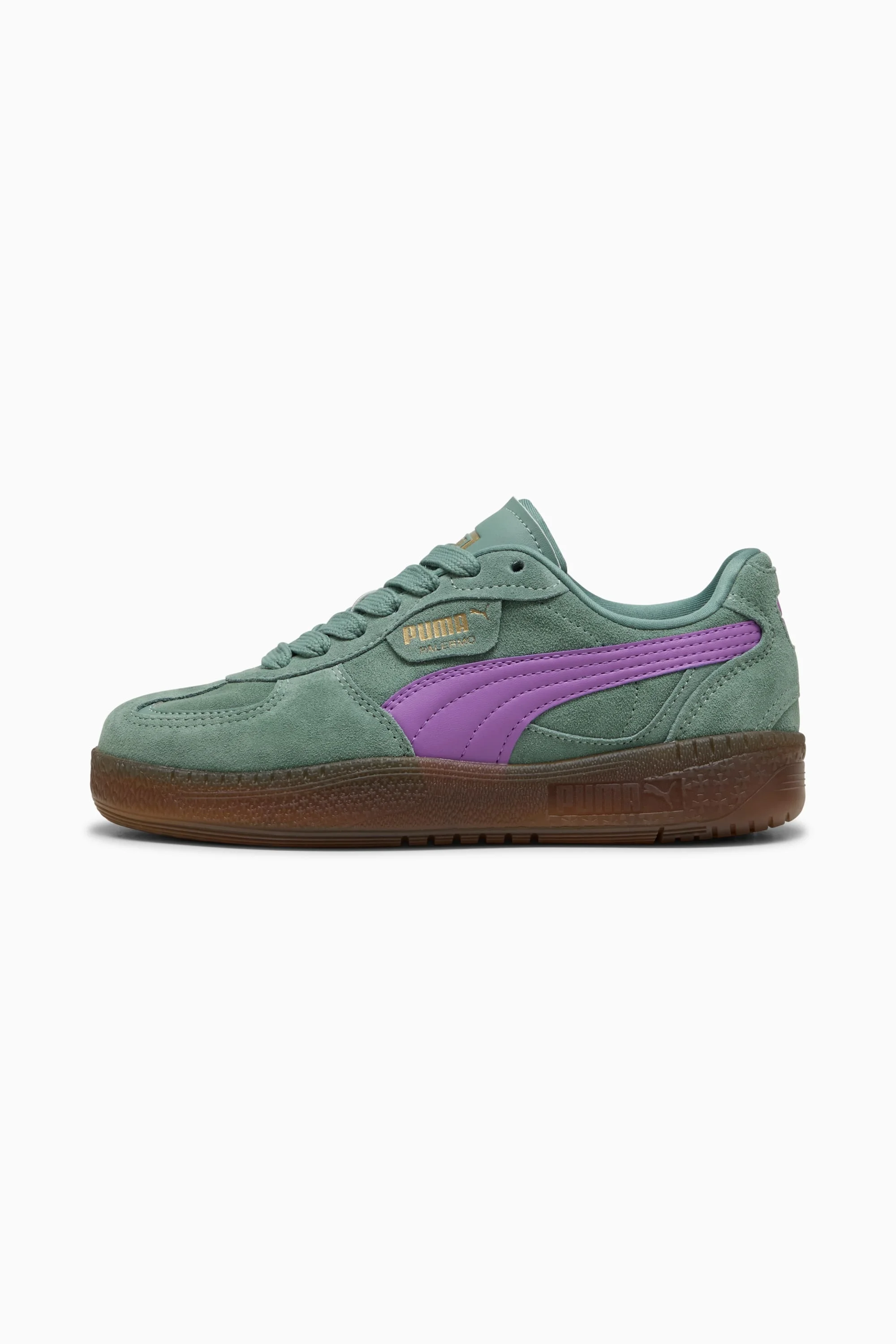PRODUCT STORY Straight from our archives, it's the PUMA Palermo. This classic terrace shoe debuted in the 80's and now, we've brought it back for the fans, revitalized as the Palermo Lamoda. With its signature T-toe construction and classic gum sole, this version features a suede upper, synthetic Formstrip, and translucent tooling. Dress it up for something smart casual. Or dress it down for something comfortably chic. FEATURES & BENEFITS - PUMA's leather products support responsible manufacturing via the Leather Working Group: www.leatherworkinggroup.com DETAILS - Style: 400323_08 - Color: Green Moon-Wild Berry - Regular fit - Suede upper - Synthetic tongue and vamp underlays - Textile lining - Fat laces - Translucent rubber midsole and outsole - Synthetic PUMA Formstrip - PUMA branding details