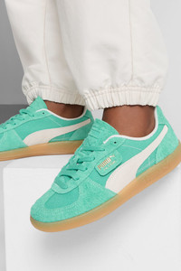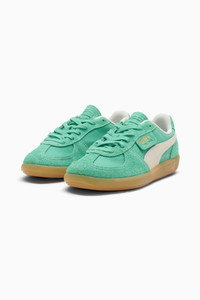 PRODUCT STORY Straight from our archives, it's the PUMA Palermo. This classic terrace shoe debuted in the 80's and now, we've brought it back for the fans. With its signature T-toe construction and classic gum sole, this version features a textile upper and suede overlays. DETAILS - Style: 400783_05 - Color: Jade Frost-Frosted Ivory-Gum - Textile base - Suede leather Formstrip - Suede leather toe and heel overlays - PUMA branding details - Mesh lining - Lace closure MATERIAL INFORMATION - Midsole: 100% Rubber - Sockliner: 100% Textile - Outsole: 100% Rubber - Upper: 73.04% Leather - cow, 26.96% Textile - Lining: 100% Textile