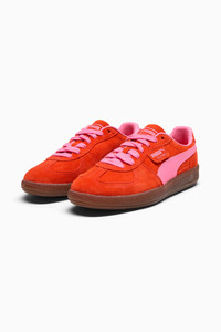 PRODUCT STORY A terrace legend from our archives returns: The Palermo. The silhouette debuted back in the early '80s, where it quickly became a staple among the terrace crowds in British soccer stadiums. Now, we’ve brought it back for the fans. Like the original, the Palermo is complete with its signature tag at the upper, a T-toe construction, and, of course, the classic gum sole. This version has a suede base and leather Formstrip with foil-printed PUMA branding. FEATURES & BENEFITS - PUMA’s leather products support responsible manufacturing via the Leather Working Group.www.leatherworkinggroup.com DETAILS - Style: 397643_72 - Color: Fierce Red-Poison Pink - Leather upper with suede base - Suede tongue and debossed PUMA branded label and mesh backing - Synthetic lining - Synthetic sockliner - Rubber midsole - Rubber outsole MATERIAL INFORMATION - Midsole: 100% Synthetic - Sockliner: 100% Textile - Outsole: 100% Rubber - Upper: 100% Leather - cow - Lining: 100% Textile