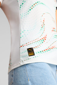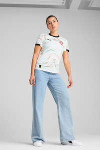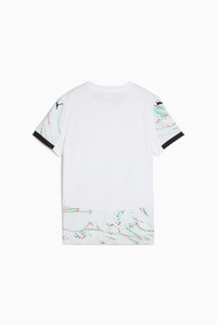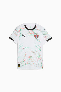 PRODUCT STORY The future shines brightly in the Portugal Away Kit. Bold graphics with red and green highlights are brought to life with motion to celebrate the intersection of art, technology, and football in modern-day Portugal. Designed for the fans, Replica jersey pairs the same match-worn look with a casual silhouette, details, and materials, ideal for both game day and everyday wear. This kit is made with RE:FIBRE, PUMA’s program to transform textile waste and other used materials into new textiles. FEATURES & BENEFITS - RE:FIBRE: As part of the RE:FIBRE program, this garment is made of at least 95% recycled material from textile waste and other used materials - COMFORT: dryCELL sweat-wicking technology designed to keep you dry and comfortable DETAILS - Style: 780770_04 - Color: PUMA White-PUMA Black - Regular fit - Short sleeves - Crew neck - Curved side and underarm panels - Official national badge placed on left chest - PUMA Cat logo placed on right chest MATERIAL INFORMATION - SHELL: 100% polyester - RIB: 100% polyester