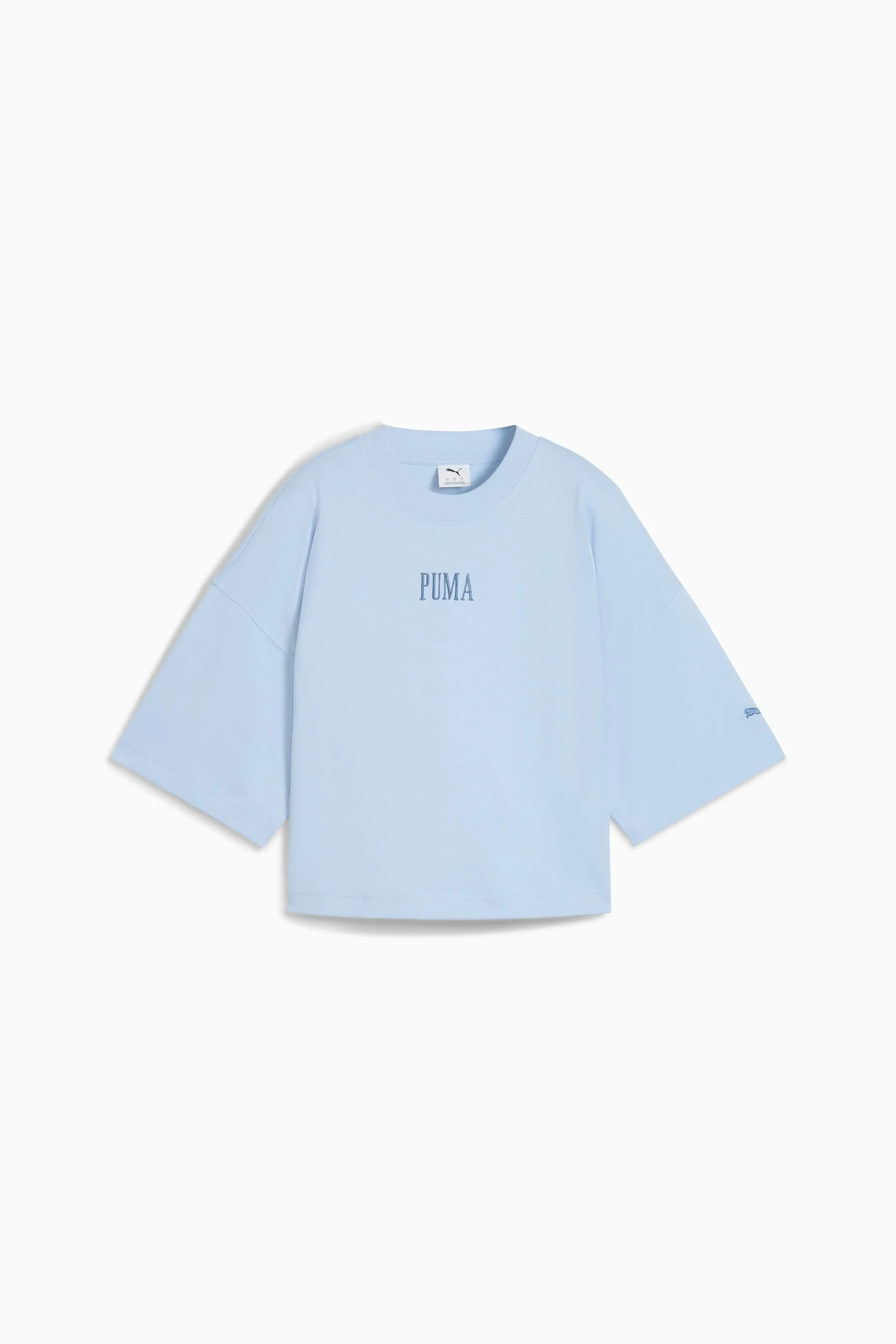 PRODUCT STORY Streetwear essentials are given an elevated twist in our Premium Essentials collection. These collectible pieces reimagine sports heritage with sophisticated, thoughtful design. Featuring timeless style and exceptional comfort, they're bound to become your new wardrobe favorites. FEATURES & BENEFITS - Made with at least 20% recycled cotton. DETAILS - Style: 632054_48 - Color: Haute Tropic - Fit: Oversized - Main material: Single jersey - Neck: Ribbed crew neck - Short sleeves - Length: Short