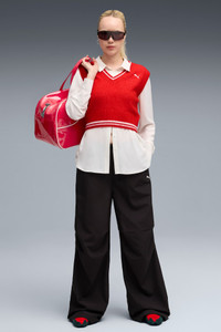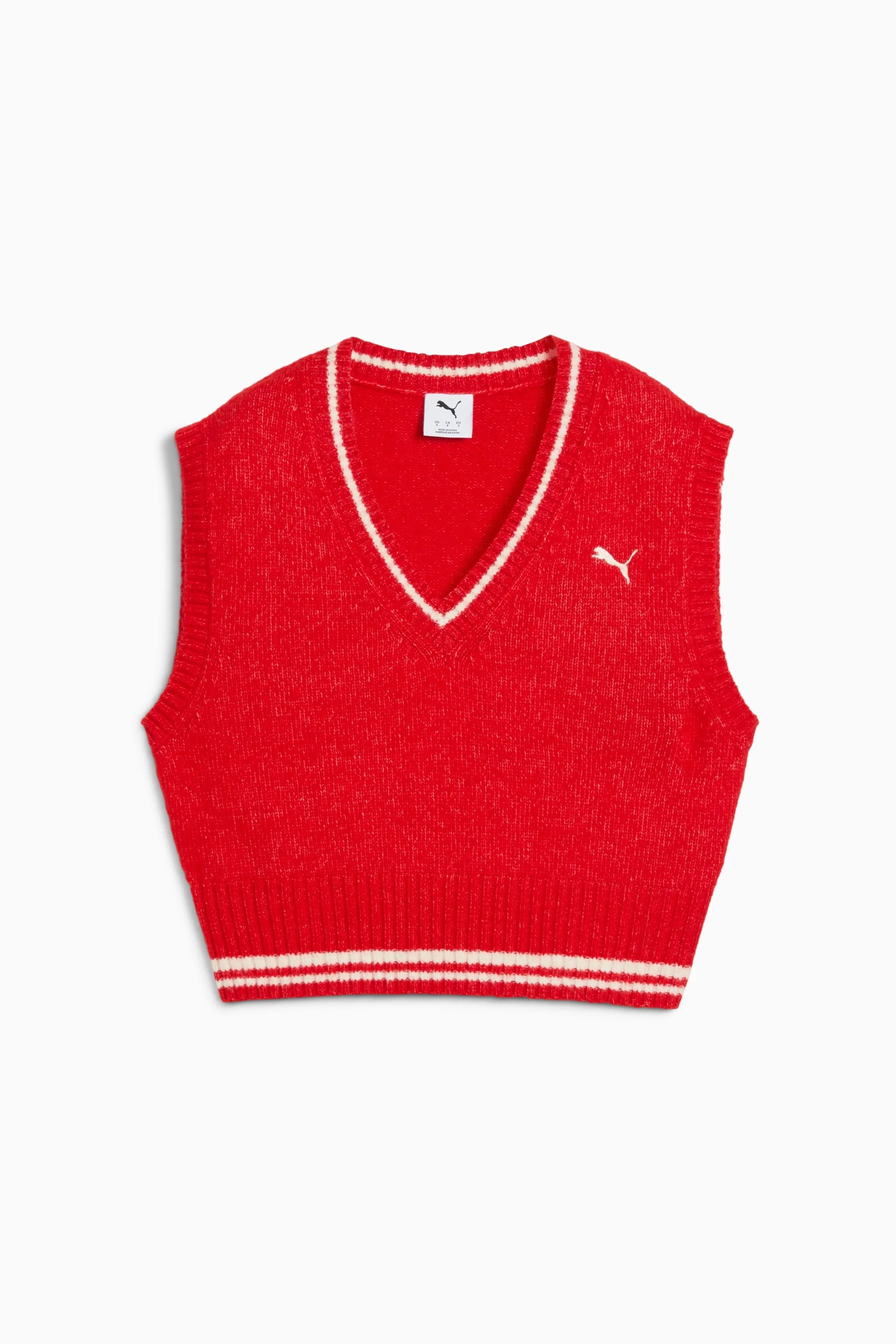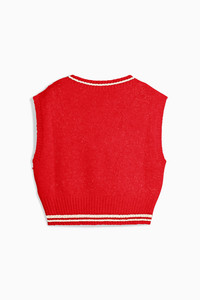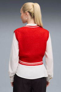 PRODUCT STORY Streetwear essentials are elevated in our Premium Essentials collection. These collectible pieces reimagine sports heritage with sophisticated, thoughtful design. Featuring timeless style and exceptional comfort, they're bound to become your new wardrobe favorites. FEATURES & BENEFITS - Made with at least 30% recycled materials. DETAILS - Style: 632174_11 - Color: For All Time Red - Fit: Regular - Rib knit - Neck: V-Neck - Sleeveless - Length: Cropped MATERIAL INFORMATION - Shell: 50% acrylic, 36% nylon, 11% polyester, 3% wool - Collar: 49% acrylic, 37% nylon, 10% polyester, 3% wool, 1% elastane - Top Hem: 50% acrylic, 35% nylon, 11% polyester, 3% wool, 1% elastane - Sleeve Cuff: 46% acrylic, 40% nylon, 10% polyester, 3% wool, 1% elastane