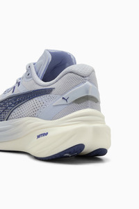 PRODUCT STORY Optimized for a wide range of foot strikes and patterns, Deviate 3 is a super-fast, ultra-responsive running shoe for any runner. Engineered with the perfect combination of nitrogen-infused NITROFOAM™ for maximum energy return and PWRPLATE technology for responsiveness, the Deviate 3 provides best-in-class cushioning for a strong, snappy, and comfortable ride at any pace for any runner. Discover speed you didn’t even know you had with the Deviate 3 – and propel yourself to your next PB. FEATURES & BENEFITS - The upper of the shoes is made with at least 20% recycled materials - NITROFOAM™: Advanced nitrogen-infused foam designed to provide superior responsiveness and cushioning in a lightweight package - PWRPLATE: Carbon fibre plate engineered to stabilise the midsole while maximising energy transfer DETAILS - Style: 309708_14 - Color: Cool Weather-Blue Crystal-PUMA Silver - Regular fit - Engineered mesh upper - Stack height: 39mm/29mm - Weight: 250g (size UK8) - Heel-to-toe drop: 10mm - Recommended for: neutral pronators MATERIAL INFORMATION - Midsole: 100% Synthetic - Sockliner: 100% Textile - Outsole: 100% Rubber - Upper: 73% Textile, 27% Synthetic - Lining: 100% Textile