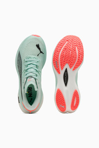PRODUCT STORY Optimized for a wide range of foot strikes and patterns, Deviate 3 is a super-fast, ultra-responsive running shoe for any runner. Engineered with the perfect combination of nitrogen-infused NITROFOAM™ for maximum energy return and PWRPLATE technology for responsiveness, the Deviate 3 provides best-in-class cushioning for a strong, snappy, and comfortable ride at any pace for any runner. Discover speed you didn’t even know you had with the Deviate 3 – and propel yourself to your next PB. FEATURES & BENEFITS - The upper of the shoes is made with at least 20% recycled materials - NITROFOAM™: Advanced nitrogen-infused foam designed to provide superior responsiveness and cushioning in a lightweight package - PWRPLATE: Carbon fibre plate engineered to stabilise the midsole while maximising energy transfer DETAILS - Style: 309708_15 - Color: Peaceful Blue-Glowing Red - Regular fit - Engineered mesh upper - Stack height: 39mm/29mm - Weight: 250g (size UK8) - Heel-to-toe drop: 10mm - Recommended for: neutral pronators MATERIAL INFORMATION - Midsole: 100% Synthetic - Sockliner: 100% Textile - Outsole: 100% Rubber - Upper: 73% Textile, 27% Synthetic - Lining: 100% Textile