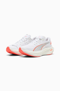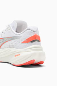 PRODUCT STORY Optimized for a wide range of foot strikes and patterns, Deviate 3 is a super-fast, ultra-responsive running shoe for any runner. Engineered with the perfect combination of nitrogen-infused NITROFOAM™ for maximum energy return and PWRPLATE technology for responsiveness, the Deviate 3 provides best-in-class cushioning for a strong, snappy, and comfortable ride at any pace for any runner. Discover speed you didn’t even know you had with the Deviate 3 – and propel yourself to your next PB. FEATURES & BENEFITS - The upper of the shoes is made with at least 20% recycled materials - NITROFOAM™: Advanced nitrogen-infused foam designed to provide superior responsiveness and cushioning in a lightweight package - PWRPLATE: Carbon fibre plate engineered to stabilise the midsole while maximising energy transfer DETAILS - Style: 309708_16 - Color: PUMA White-Glowing Red - Regular fit - Engineered mesh upper - Stack height: 39mm/29mm - Weight: 250g (size UK8) - Heel-to-toe drop: 10mm - Recommended for: neutral pronators MATERIAL INFORMATION - Midsole: 100% Synthetic - Sockliner: 100% Textile - Outsole: 100% Rubber - Upper: 73% Textile, 27% Synthetic - Lining: 100% Textile
