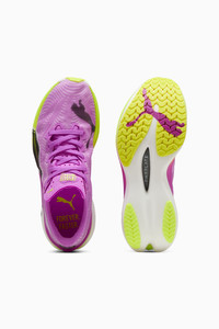PRODUCT STORY Hit turbo speed. The Deviate NITRO™ Elite 3 is a running shoe redesigned for lightweight, race day propulsion. A carbon fibre PWRPLATE ensures stability and maximum running efficiency, while NITROFOAM™ ELITE offers supreme cushioning that won't weigh you down. It's a running go-to made with lightweight mono-mesh and durable PUMAGRIP rubber for multi-surface traction and an effortless run. FEATURES & BENEFITS - NITROFOAM™ ELITE: Premium performance foam technology that provides pinnacle responsiveness in an extremely lightweight package - PWRPLATE: Carbon fibre plate engineered to stabilise the midsole while maximising energy transfer - ULTRAWEAVE: Ultra-light, engineered fabric with a structured, 4-way stretch that reduces weight and friction. Built for athletes looking to increase speed and strength DETAILS - Style: 309810_04 - Color: Pure Magenta-Yellow Alert - Regular fit - ULTRAWEAVE upper - Stack height: 40mm/32mm - Weight: 194g (size UK8) - Heel-to-toe drop: 8mm - Recommended for: neutral pronators MATERIAL INFORMATION - Midsole: 100% Synthetic - Sockliner: 100% Textile - Outsole: 87% Rubber, 13% Synthetic - Upper: 82% Textile, 18% Synthetic - Lining: 100% Textile