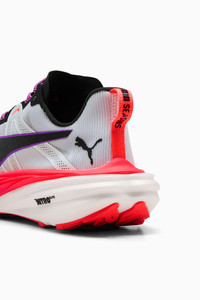 PRODUCT STORY The Deviate Elite Trail is an all-new high-performance running shoe designed for trail running. Take your route off-road with the Deviate Elite Trail’s rugged design and ready-for-anything details. Dominate the course with NITROFOAM™ ELITE and PWRPLATE tech that’s trail-tested for optimal energy return, cushioning, and comfort. From speed work on local trails to that race day moment, the Deviate Elite Trail can handle whatever you throw at it. FEATURES & BENEFITS - The upper of the shoes is made with at least 20% recycled materials - NITROFOAM™ Elite Cushioning: Innovative Nitrogen-infused foam technology that uses premium raw materials for maximal energy return on race day - PUMAGRIP ATR: Trail-ready performance rubber compound designed for traction on ice, mud, and unstable surfaces - PWRPLATE: Carbon fibre plate engineered to stabilise the midsole while maximising energy transfer DETAILS - Style: 310468_01 - Color: PUMA White-Glowing Red-Pure Magenta - ULTRAWEAVE upper - Shoe weight: 245g (UK size 8) - Heel-to-toe drop: 6mm - Recommended for: neutral pronators - PUMA branding details MATERIAL INFORMATION - Midsole: 100% Synthetic - Sockliner: 100% Textile - Outsole: 100% Rubber - Upper: 63% Textile, 37% Synthetic - Lining: 100% Textile