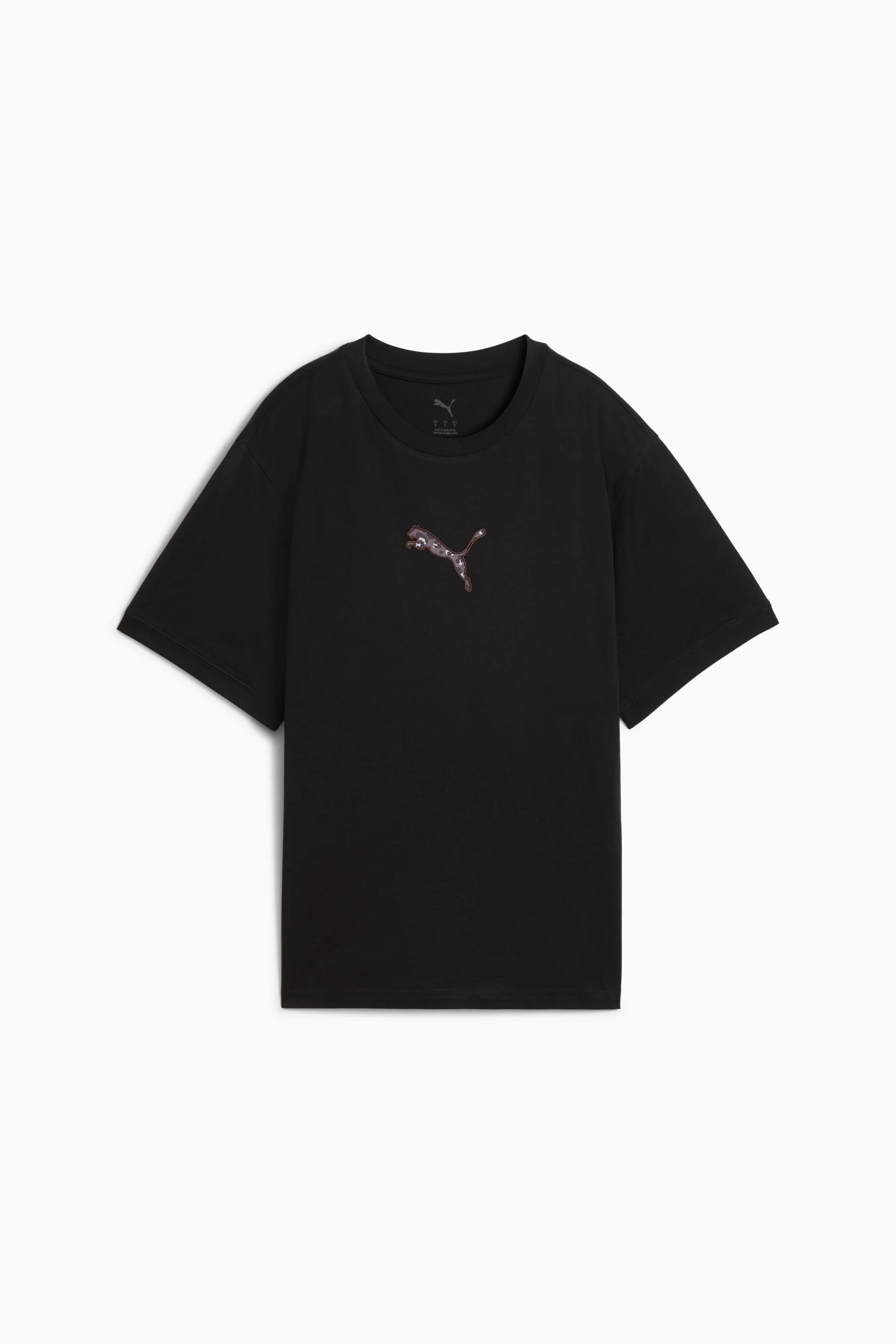 PRODUCT STORY Stylish, comfy, and always on point — PUMA Essentials are designed for laid-back days. Whether you're relaxing, grabbing a coffee, or on the go, these pieces provide the perfect mix of comfort and style. Simple, versatile, and made to keep you feeling great all day long. FEATURES & BENEFITS - Made with at least 20% recycled cotton DETAILS - Style: 691945_01 - Color: PUMA Black - Fit: Relaxed - Main Material: Pique - Neck: Crew neck - Short sleeves - Length: Regular MATERIAL INFORMATION - Shell: 100% cotton - Rib: 80% cotton, 20% polyester