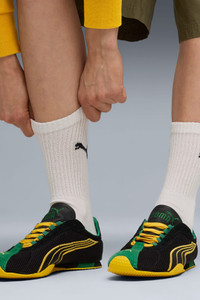 PRODUCT STORY With a design inspired by the iconic 2000s running spike, the PUMA Harambee, the H-Street is a timeless icon, blending sprinting heritage with street DNA. It recalls the golden era of the 2000s when track and field merged with streetwear. This season, H-Street returns from the archives with its lightweight upper, low-profile silhouette, and street legacy still intact. DETAILS - Style: 405422_02 - Color: PUMA Black-Yellow Sizzle - Regular fit - Rounded toe - Lace closure - Heel type: Flat - Mesh upper - Moulded footbed - Textile lining - Cushioned EVA midsole MATERIAL INFORMATION - Sockliner: 100% Textile - Outsole: 100% Rubber - Upper: 81.07% Textile, 18.93% Leather - cow - Lining: 100% Textile