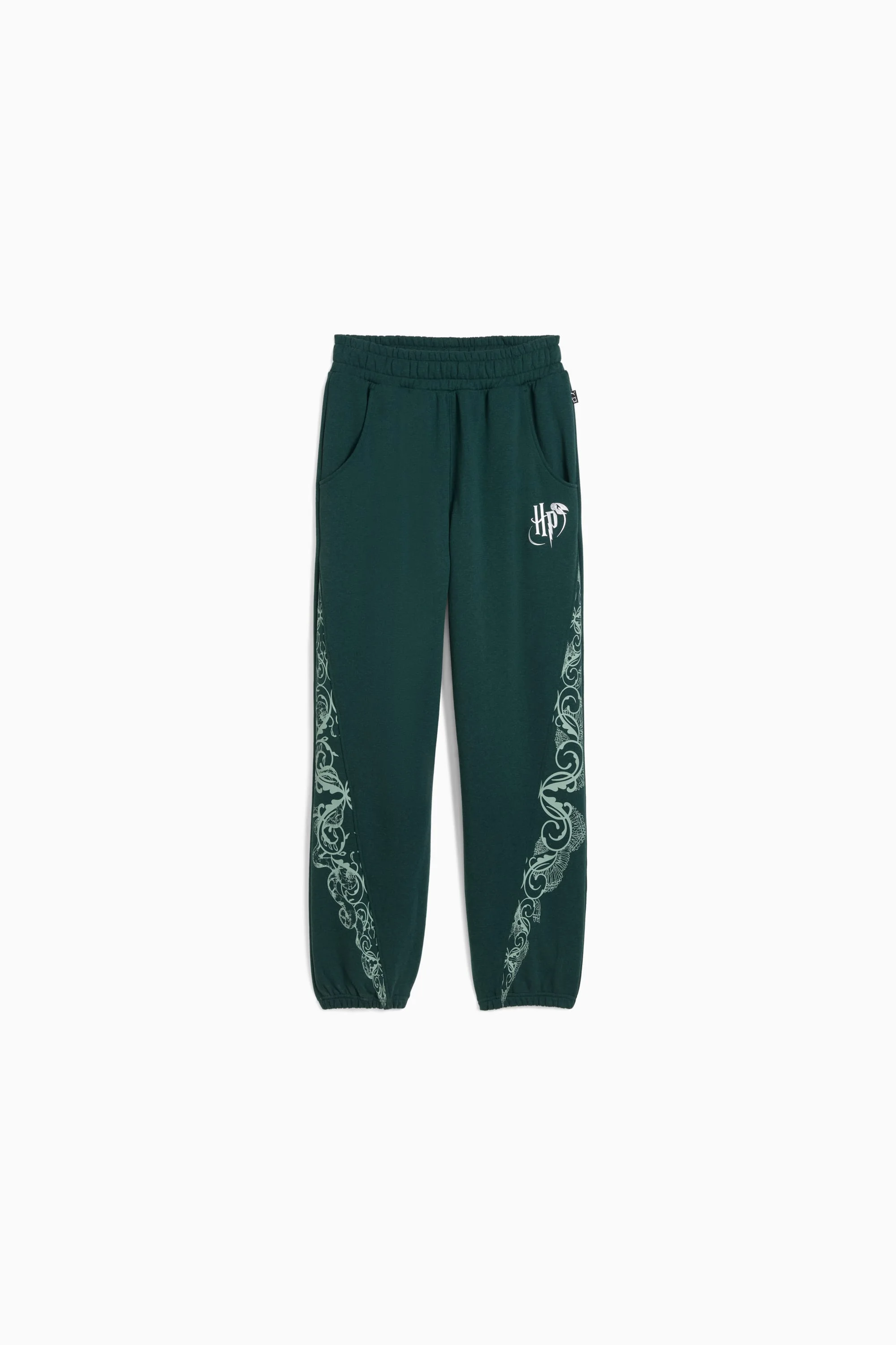 PRODUCT STORY The all-new PUMA HOOPS x HARRY POTTER™ collection is a mysterious mashup of basketball and the beloved fantasy series. Featuring a full range of apparel, footwear, and accessories, this collection is ready for anything, whether you live in the magical world or the muggle world. Apparel designs include basketball mesh shorts and comfy pre-game sweat gear, all with Harry Potter™–inspired graphics. FEATURES & BENEFITS - Made with at least 20% recycled cotton DETAILS - Style: 633112_01 - Color: Green Terrain-heather - Fit: Relaxed - Bottom: Closed bottom - Length: Full Length - Rise: Medium - Pockets: Side pockets - HARRY POTTER™ branding details MATERIAL INFORMATION - Upper Pocket Bag: 100% cotton - Shell: 100% cotton - Pocket Bag: 100% cotton