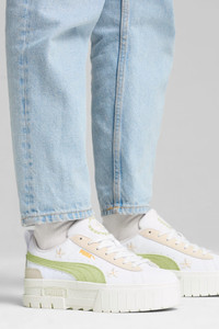 PRODUCT STORY Make a street style statement in the Mayze Embroidery sneakers. With a stacked sole and 3D embroidered flowers, set trends and turn heads. Designed for the hype girls and fashion mavens, these sneakers deliver standout style inspired by the streets. Step into the spotlight and get ready to be noticed in every step. DETAILS - Style: 399674_01 - Color: PUMA White-Pistachio Green - Regular fit - Synthetic upper - Suede eyestay and bottom heel overlays - Canvas lining - Lace closure - Rubber midsole and outsole - Textile PUMA Formstrip - 3D embroidered flowers on the quarter panel - Platform style - PUMA branding details MATERIAL INFORMATION - Midsole: 100% Synthetic - Sockliner: 100% Textile - Outsole: 100% TR (Thermoplastic Rubber) - Upper: 55.06% Synthetic, 23.57% Leather - cow, 21.37% Textile - Lining: 100% Textile